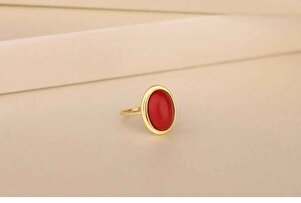Doğal Kırmızı Mercan Taşı Altın Kaplama Gümüş Yüzük Doğal Kırmızı Mercan Taşı Altın Kaplama Gümüş Yüzük SVMYZK 28