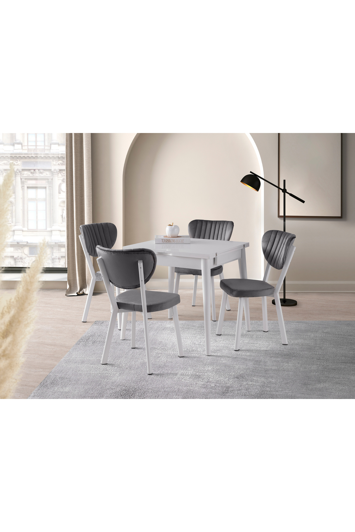 Rut Serisi Açılabilir 80x132 Beyaz Mutfak Masası Takımı Ve 4 Antrasit Sandalye Rut Serisi Açılabilir 80x132 Beyaz Mutfak Masası Takımı Ve 4 Antrasit Sandalye 22RUT04BYZ04 تک سایز