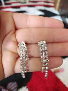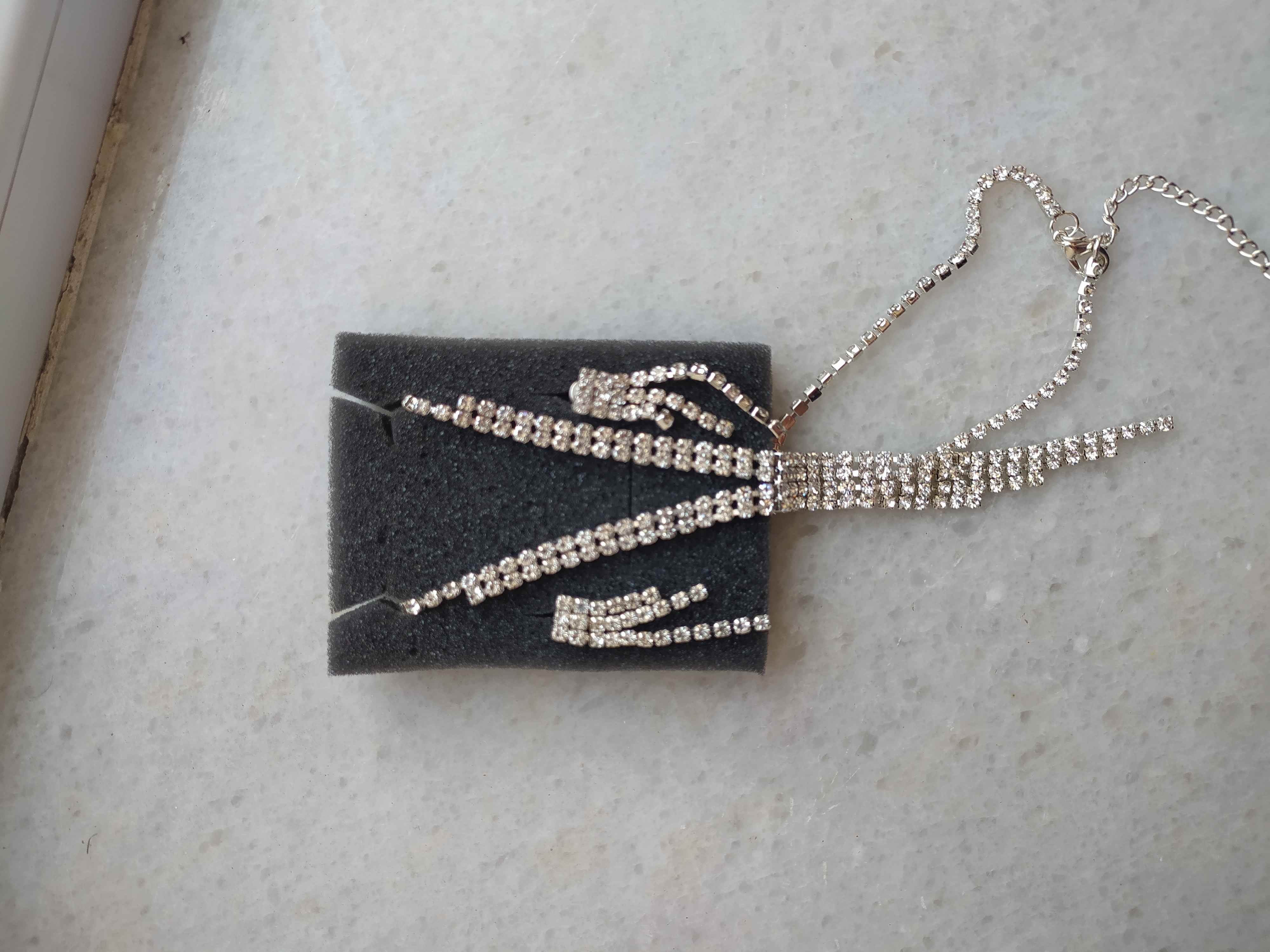Abiye Kolye Küpe Set, Düğün Nişan Kına Gelin Seti Beyaz, Gümüş Abiye Kolye Küpe Set, Düğün Nişan Kına Gelin Seti Beyaz, Gümüş wertytrew344 49 cm
