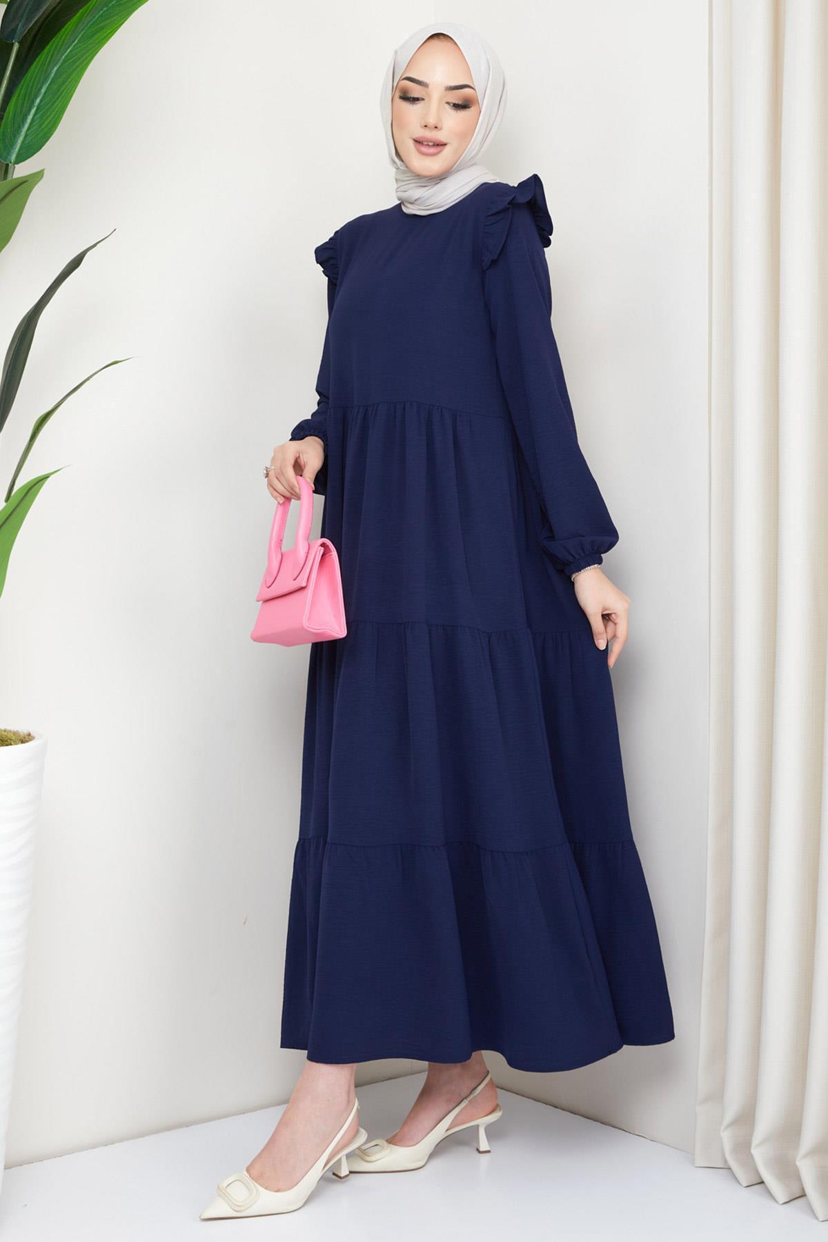 Omuzu Fırfırlı Ayrobin Tesettür Elbise Lacivert Omuzu Fırfırlı Ayrobin Tesettür Elbise Lacivert 2062 48