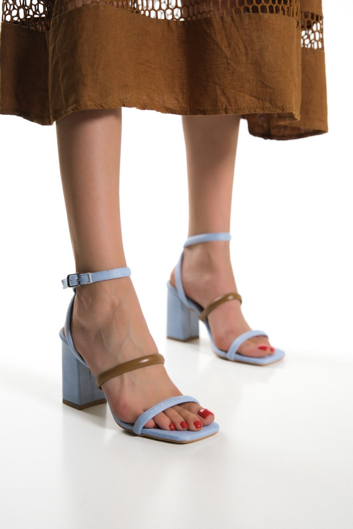 Mavi Kadın Hasır Topuklu Ayakkabı Taşlı Bilekten Bağlamalı Sandalet Mavi Kadın Hasır Topuklu Ayakkabı Taşlı Bilekten Bağlamalı Sandalet 1903060 40