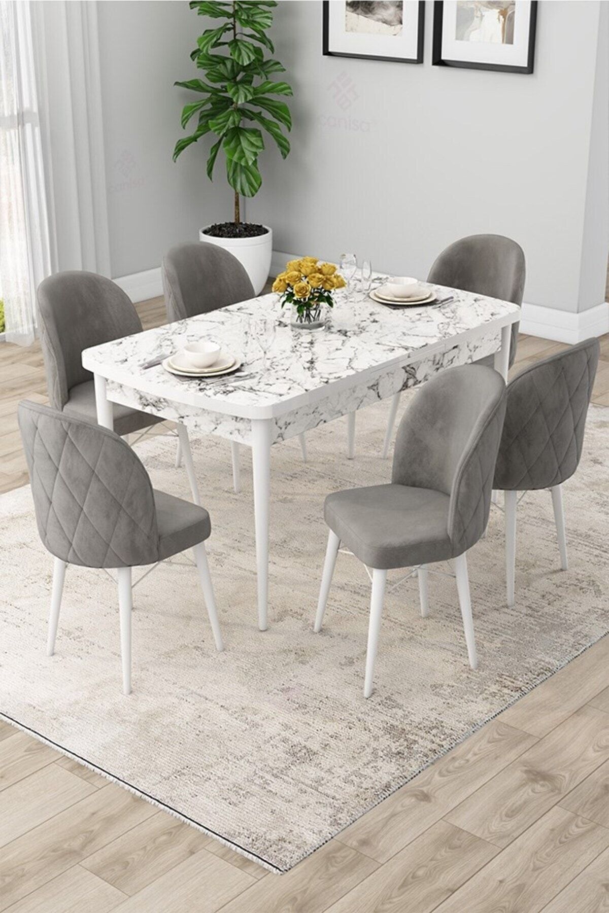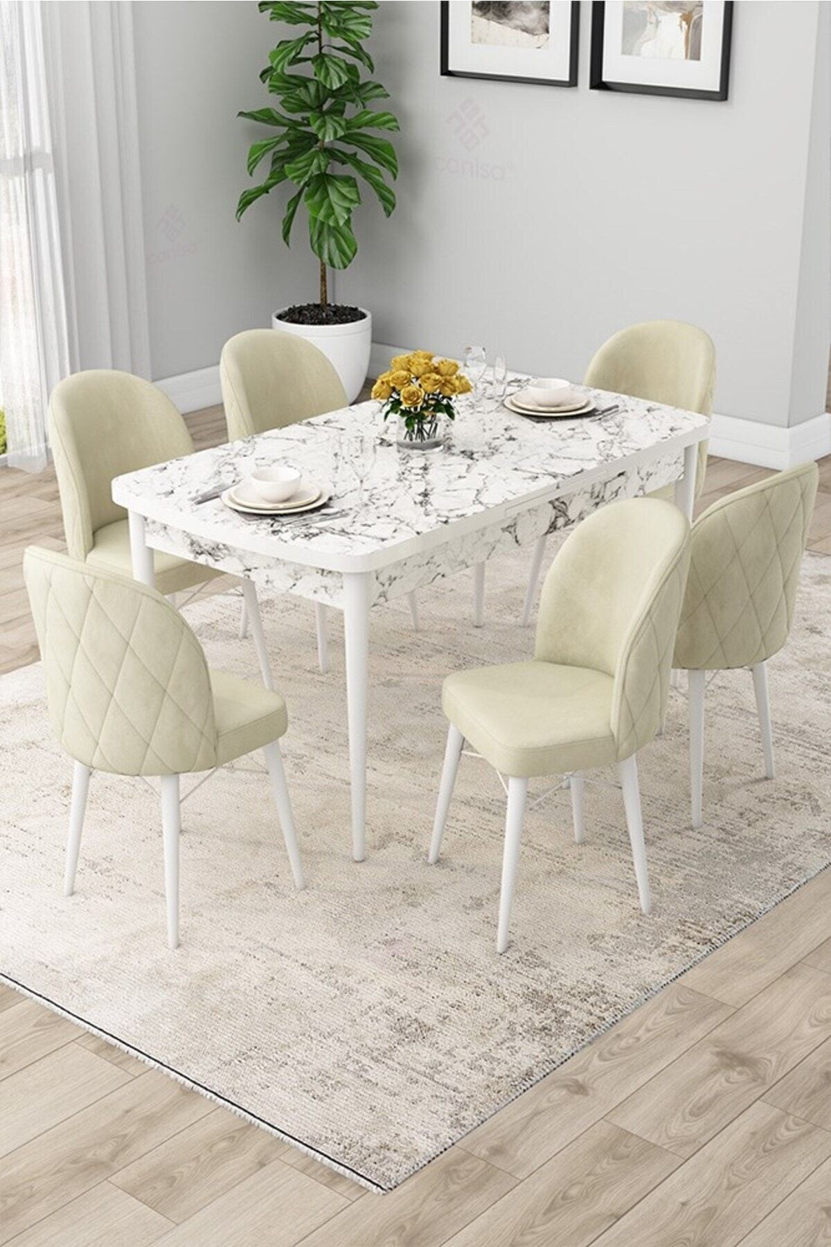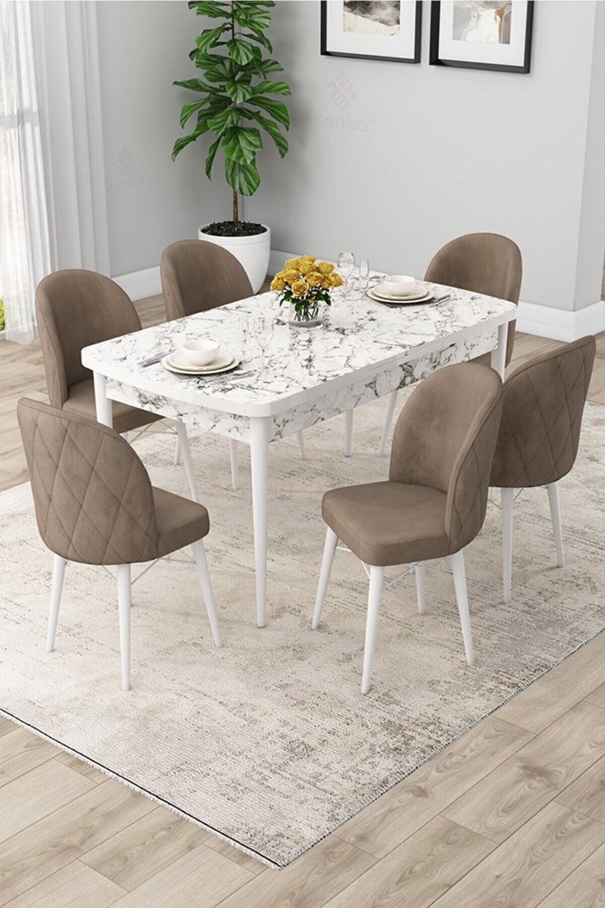 Rut Serisi Açılabilir 80x132 Beyaz Mermer Desen Mutfak Masası Takımı 4 Cappucino Sandalye 1 Bench Rut Serisi Açılabilir 80x132 Beyaz Mermer Desen Mutfak Masası Takımı 4 Cappucino Sandalye 1 Bench 22RUT06BYZMR06 تک سایز