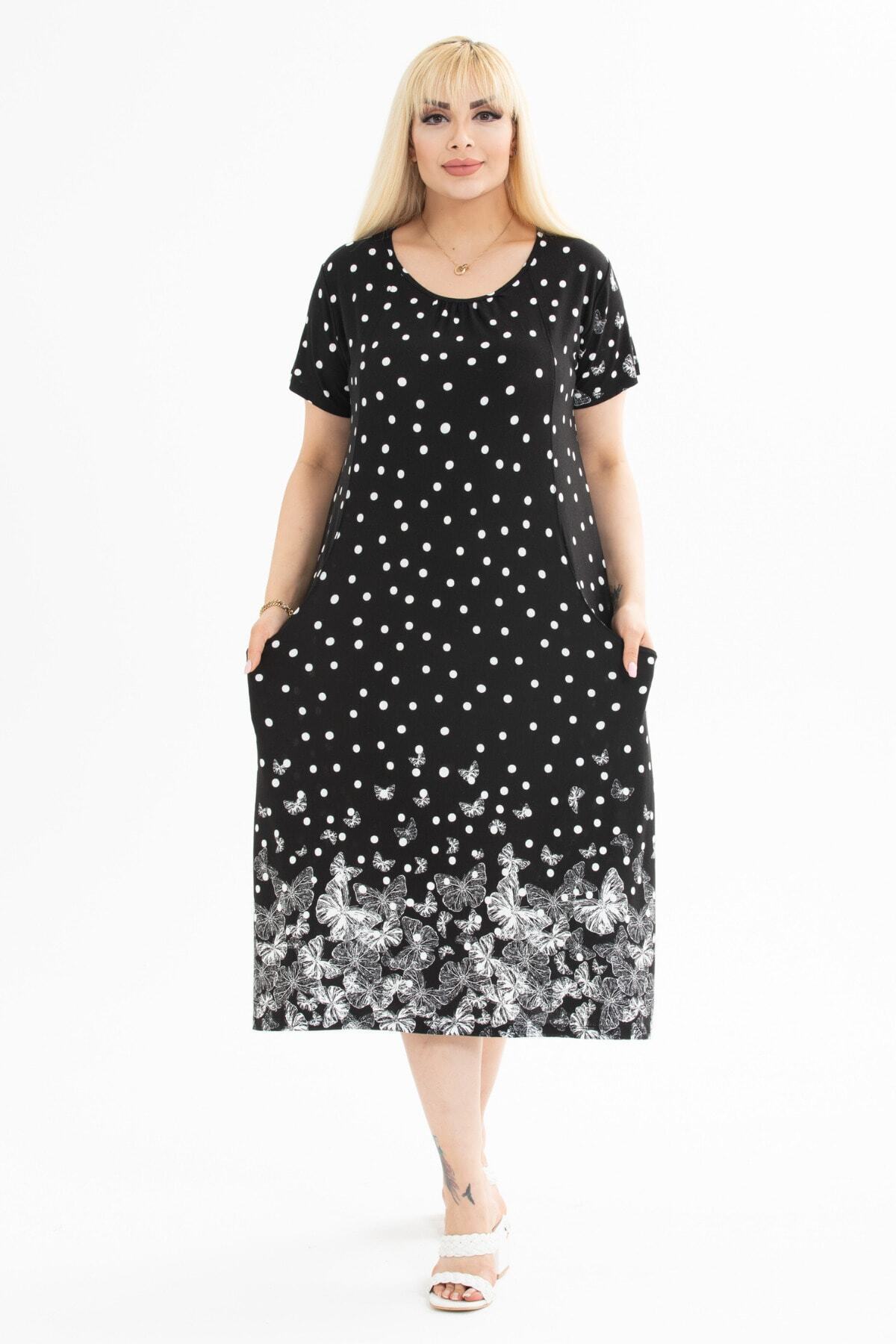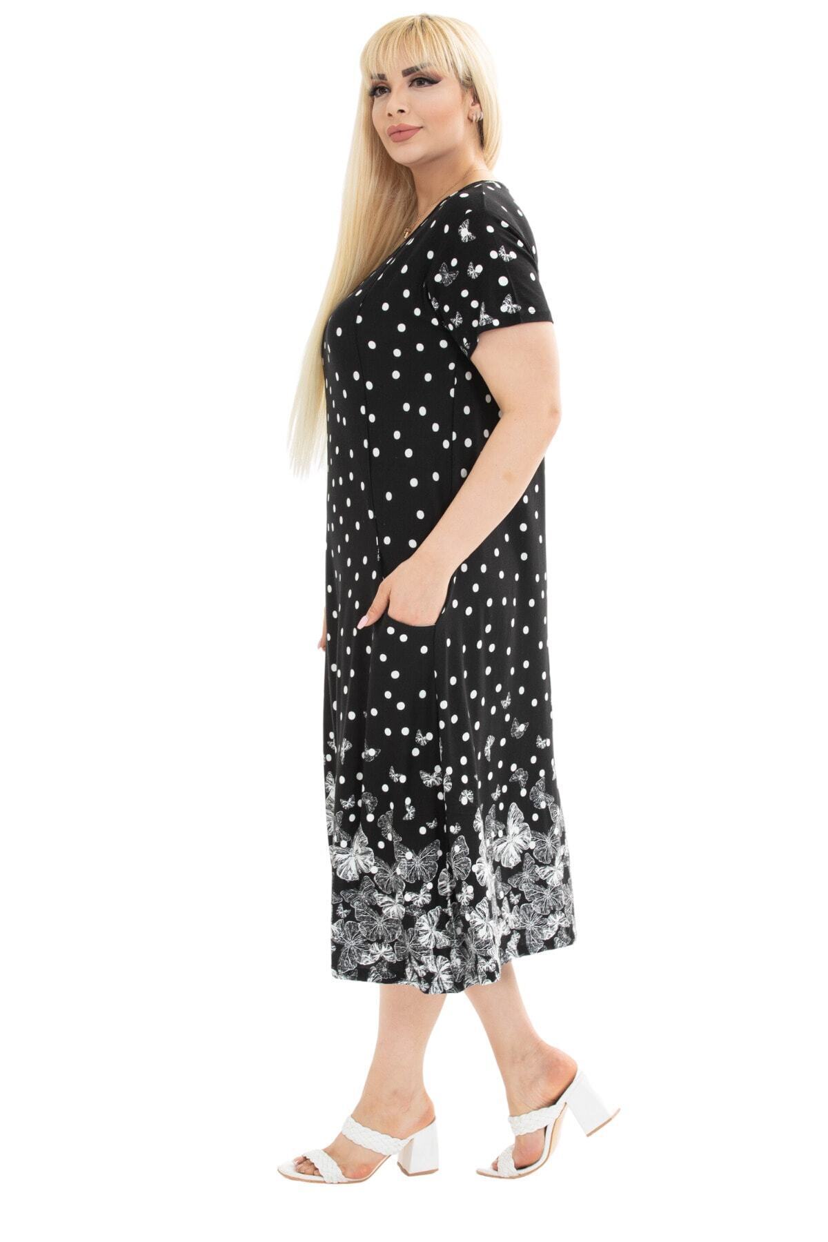 Kadın Siyah Göğüs Kuplu Cepli Puanlı Kelebek Desen Elbise Kadın Siyah Göğüs Kuplu Cepli Puanlı Kelebek Desen Elbise KPCP-PNT-KLBK Standart