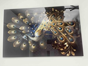 Tavus Kuşu Cam Tablo Dekoratif Cam Tablo Tavus Kuşu Cam Tablo Dekoratif Cam Tablo DKY0189 60 x 90