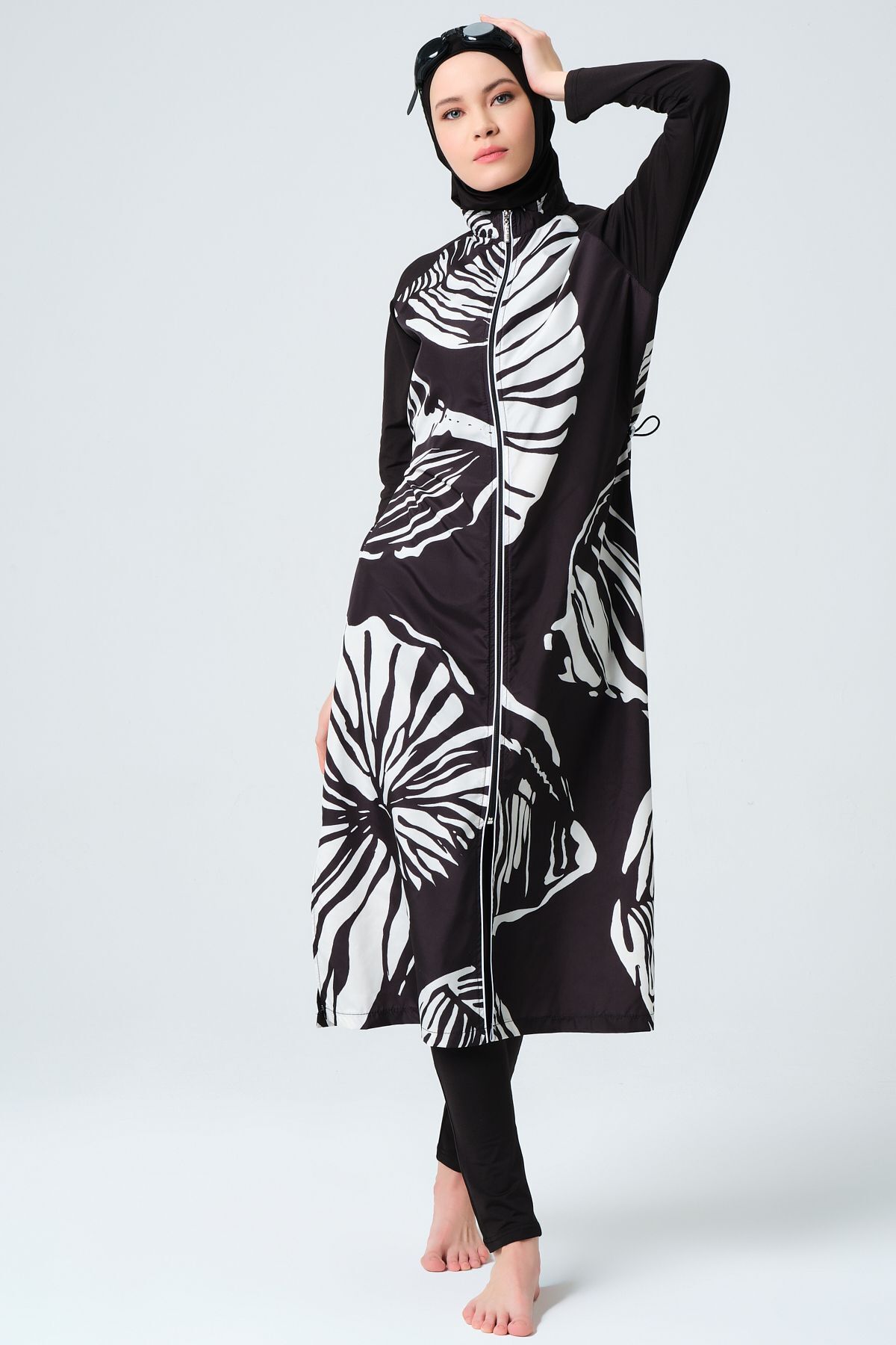 Kadın Tesettür Mayo Üzerine Şeritli Yaprak Desenli Tek Pareo Kadın Tesettür Mayo Üzerine Şeritli Yaprak Desenli Tek Pareo 2231 تک سایز