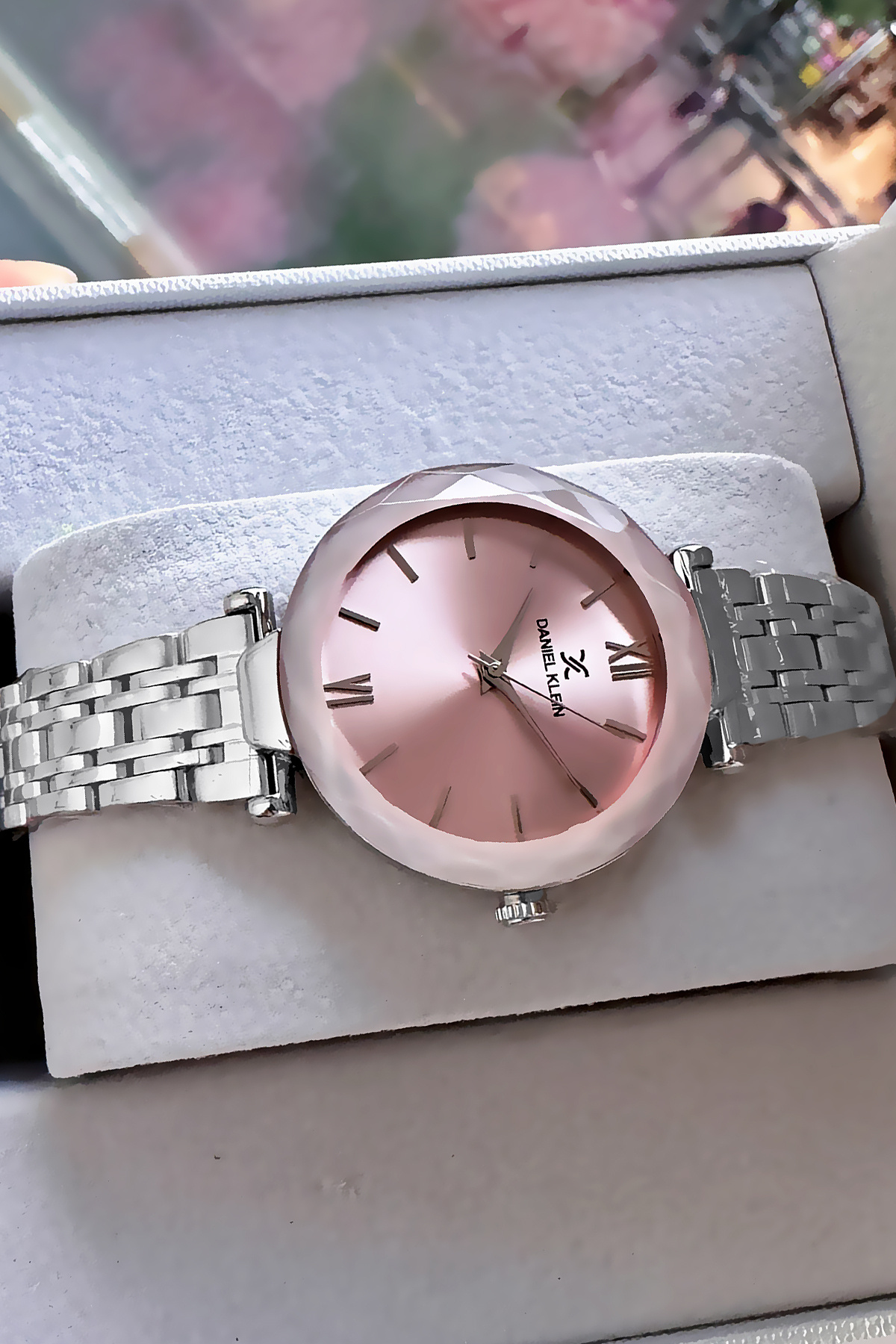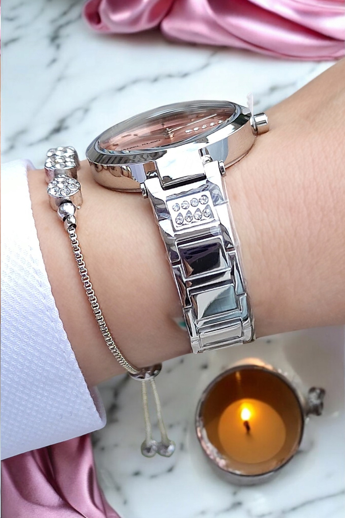 Metalik Çelik Bilezik Pembe Kadranlı Kadın Kol Saati + Zirkon Taşlı Bileklik Metalik Çelik Bilezik Pembe Kadranlı Kadın Kol Saati + Zirkon Taşlı Bileklik DKE10275 تک سایز