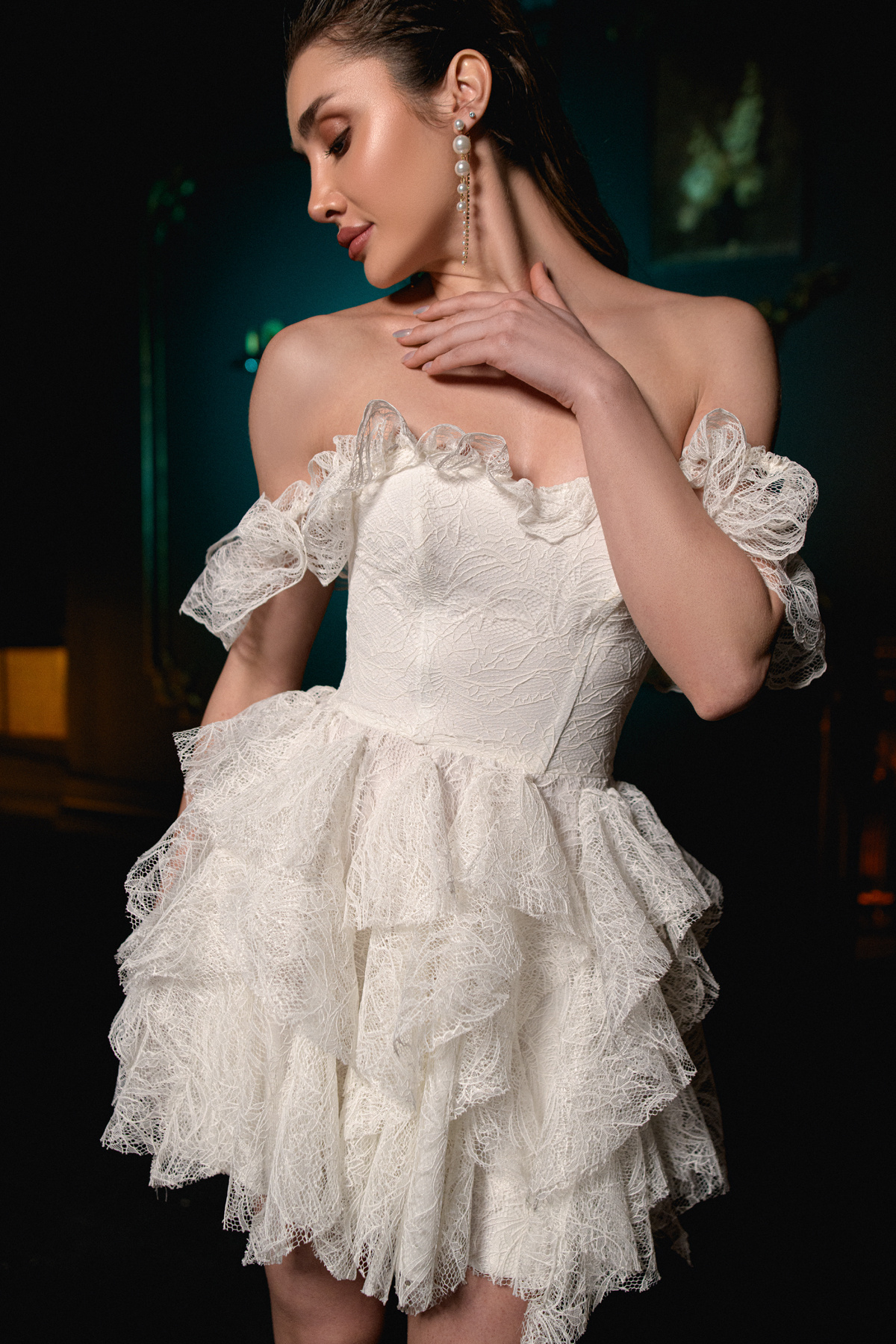Beyaz Dantel Kaplı Mini Gece ve Parti Elbisesi Beyaz Dantel Kaplı Mini Gece ve Parti Elbisesi LM080623TM01 44