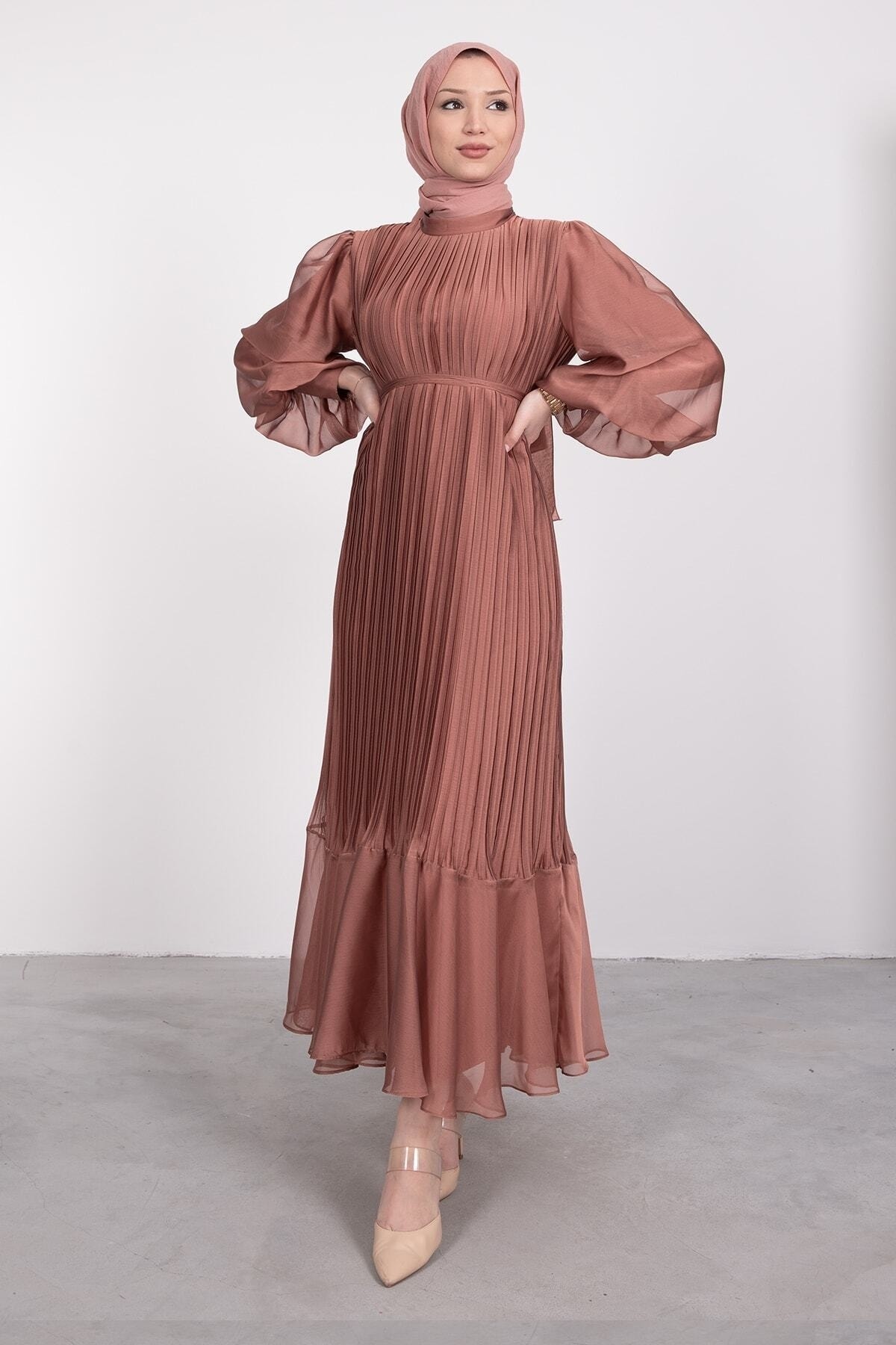 Piliseli Şifon Tesettür Elbise Piliseli Şifon Tesettür Elbise BTRFLYJNJN 2XL
