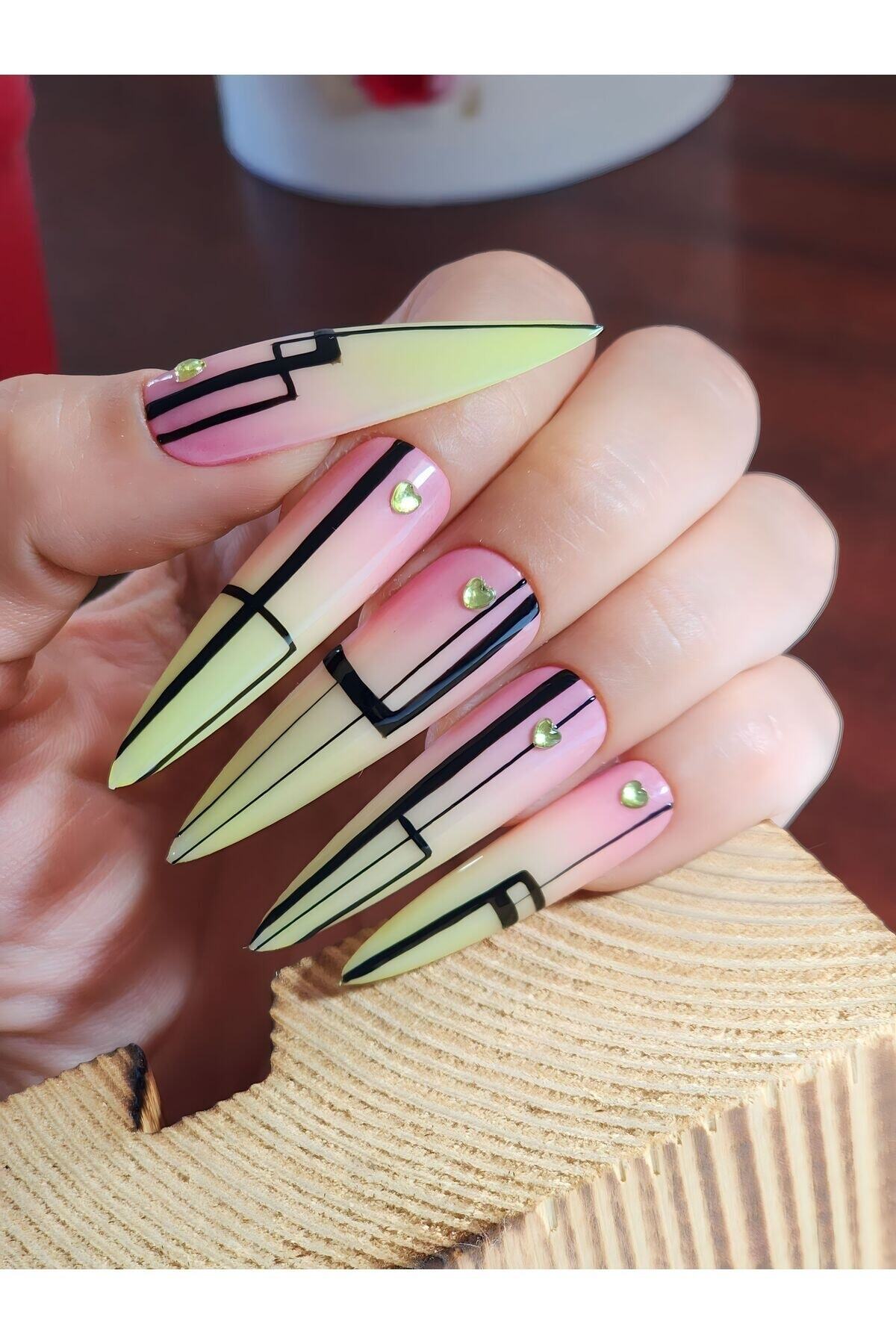Takma Tırnak Stiletto Takma Tırnak Stiletto ombre-taş تک سایز