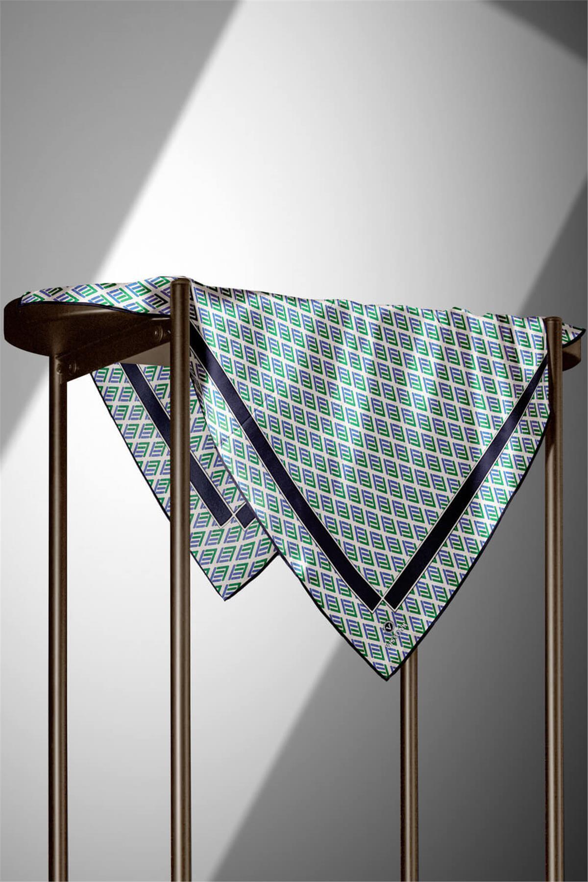 %100 Twill İpek Geometrik Desenli Saks - Zümrüt Yeşili Renkli 90x90 Eşarp Dikim Şekli : El Dikişi %100 Twill İpek Geometrik Desenli Saks - Zümrüt Yeşili Renkli 90x90 Eşarp Dikim Şekli : El Dikişi DGN51487 90x90