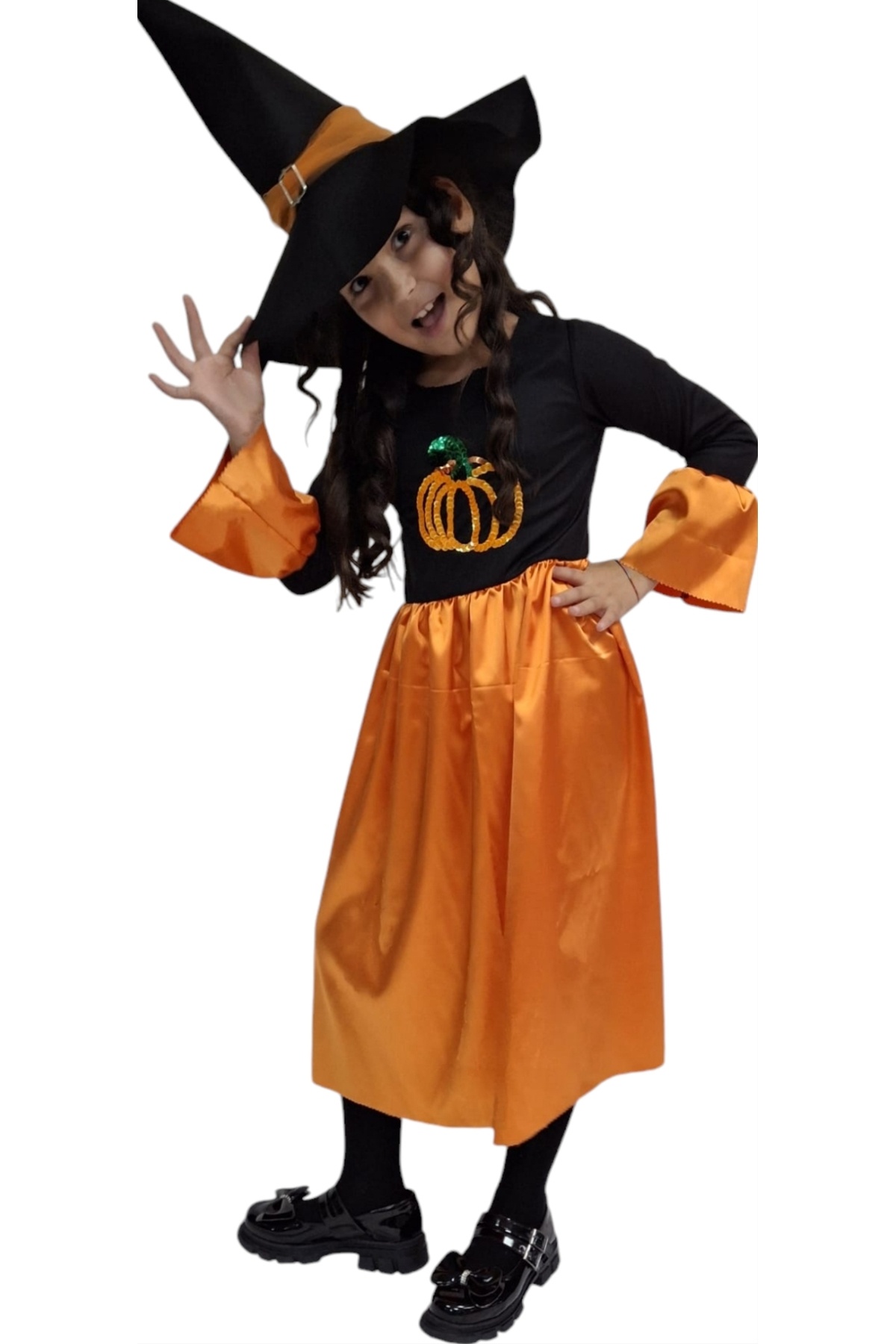 Kız Çocuk Halloween Turuncu Siyah Cadı Elbise Kostüm Parti Cadılar Bayramı Kız Çocuk Halloween Turuncu Siyah Cadı Elbise Kostüm Parti Cadılar Bayramı 6046 7-8 Yaş