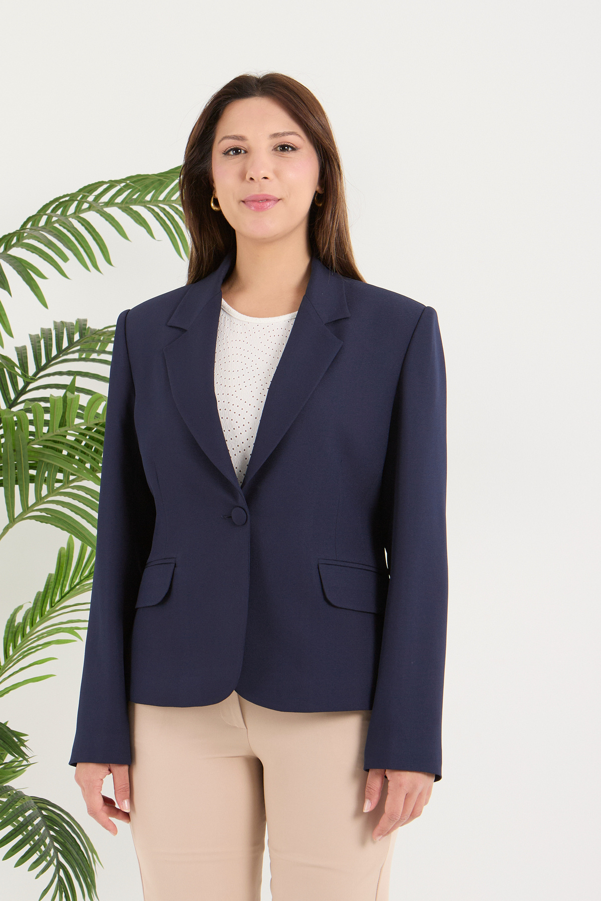 Kadın Tek Düğme Belden Oturtmalı Spor Ceket Kadın Tek Düğme Belden Oturtmalı Spor Ceket 01G 44