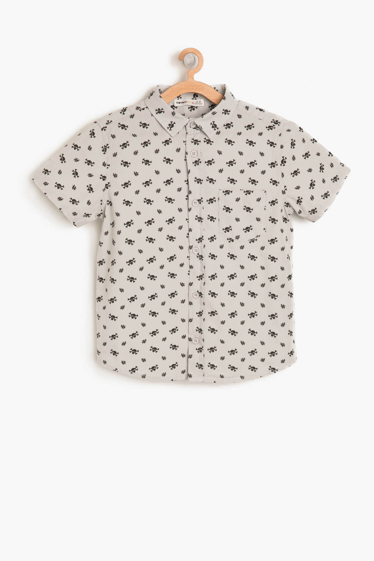 Kısa Kollu Gömlek Palmiye Desenli Tek Cep Detaylı Kısa Kollu Gömlek Palmiye Desenli Tek Cep Detaylı 3SKB60079TW 11-12 Yaş