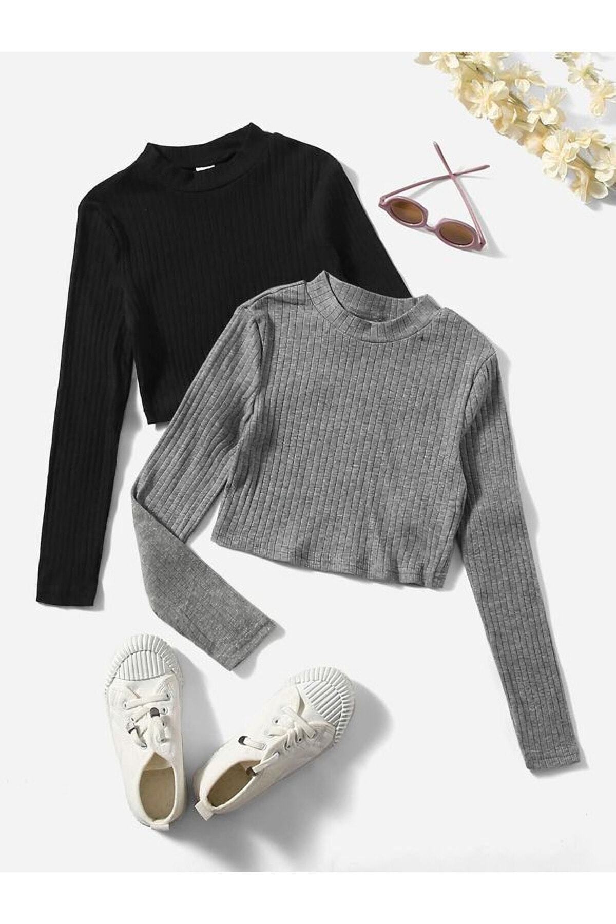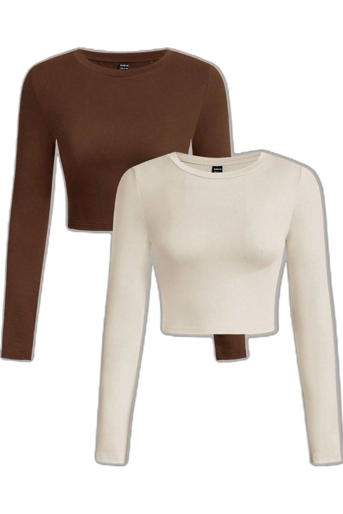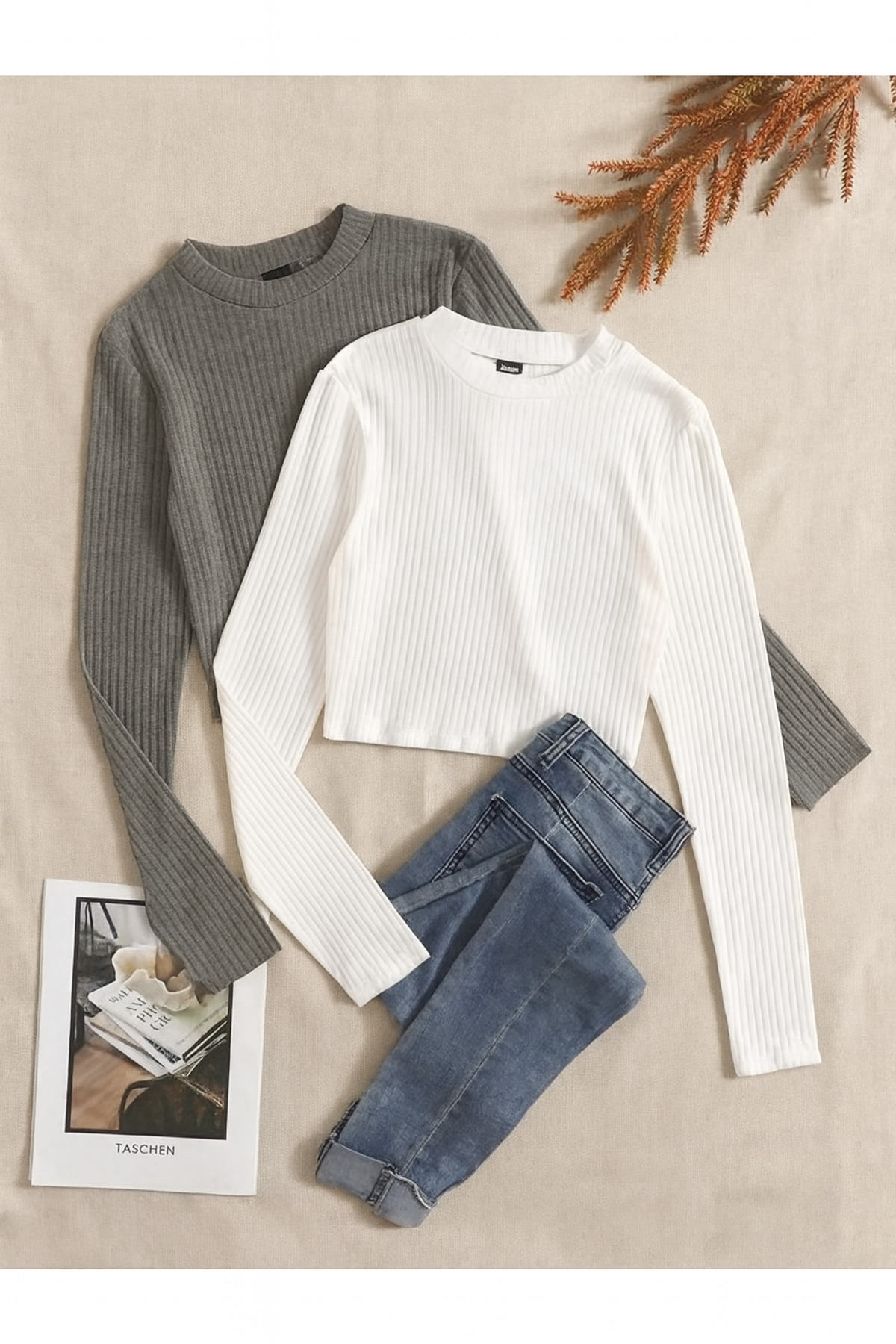 Kadın 2 lİ Adet Fitilli %100 PAMUKLU Bisiklet Yaka Örme Kaşkorse Uzun Kol Crop Bluz Kadın 2 lİ Adet Fitilli %100 PAMUKLU Bisiklet Yaka Örme Kaşkorse Uzun Kol Crop Bluz ÖZ PAMUK UZUN-CROPE2 L