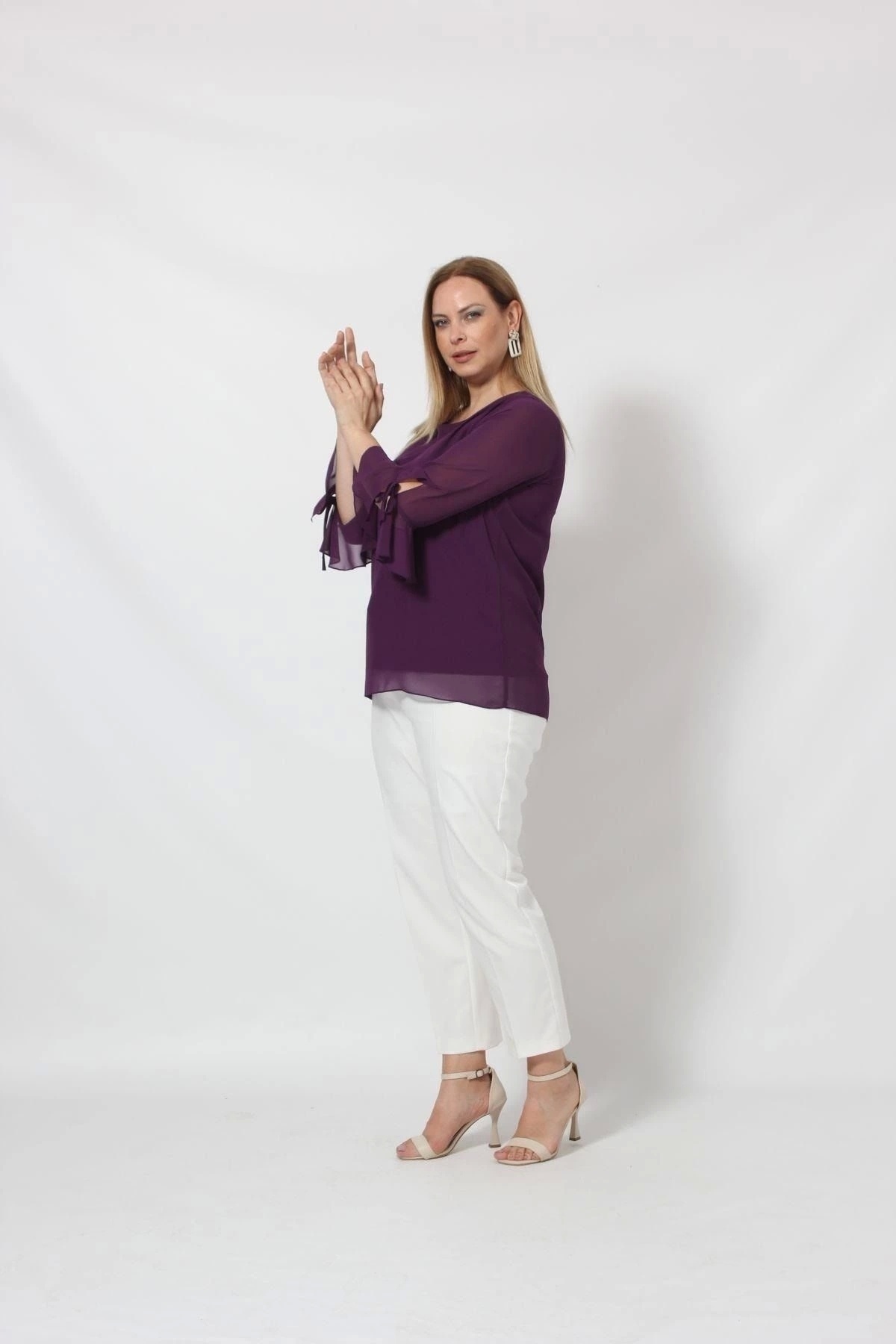 3119M Mürdüm Kolu Valon ve Bağcık Detaylı Bluz 3119M Mürdüm Kolu Valon ve Bağcık Detaylı Bluz 48