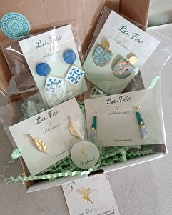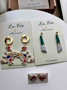 Turkuaz & nature renk gold detay el yapımı polimer kil küpe Turkuaz & nature renk gold detay el yapımı polimer kil küpe lafee223 S
