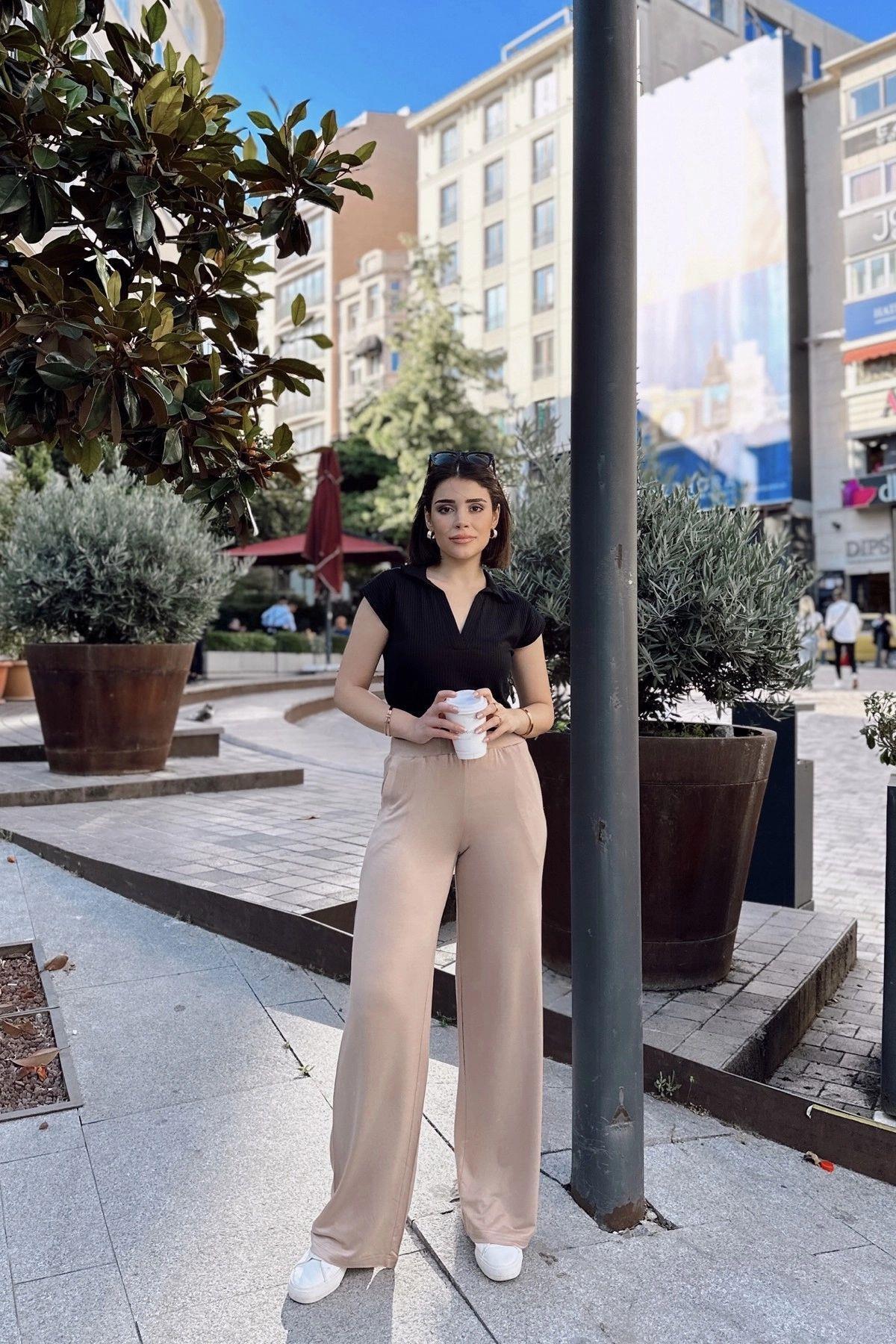 Bej İspanyol Bol Paça, Lastikli Bel, Yumuşak Dokulu Kumaş, Salaş & Rahat Kalıp/Kesim, Pantolon Bej İspanyol Bol Paça, Lastikli Bel, Yumuşak Dokulu Kumaş, Salaş & Rahat Kalıp/Kesim, Pantolon NY3169 42