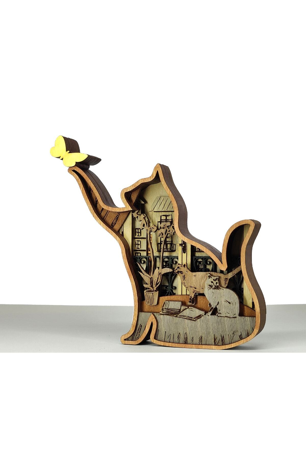 Modern Tasarımlı Ahşap Mdf Masa Süsü, Hediyelik Kedi Ve Kelebek Dekoratif Obje Modern Tasarımlı Ahşap Mdf Masa Süsü, Hediyelik Kedi Ve Kelebek Dekoratif Obje kdklb تک سایز