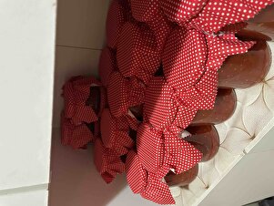25 Adet Beyaz Puantiyeli Kırmızı Kavanoz Kapağı Kumaşı (Örtüsü) ve Renkli Bağlama Lastiği 25 Adet Beyaz Puantiyeli Kırmızı Kavanoz Kapağı Kumaşı (Örtüsü) ve Renkli Bağlama Lastiği adaesintisi242 تک سایز