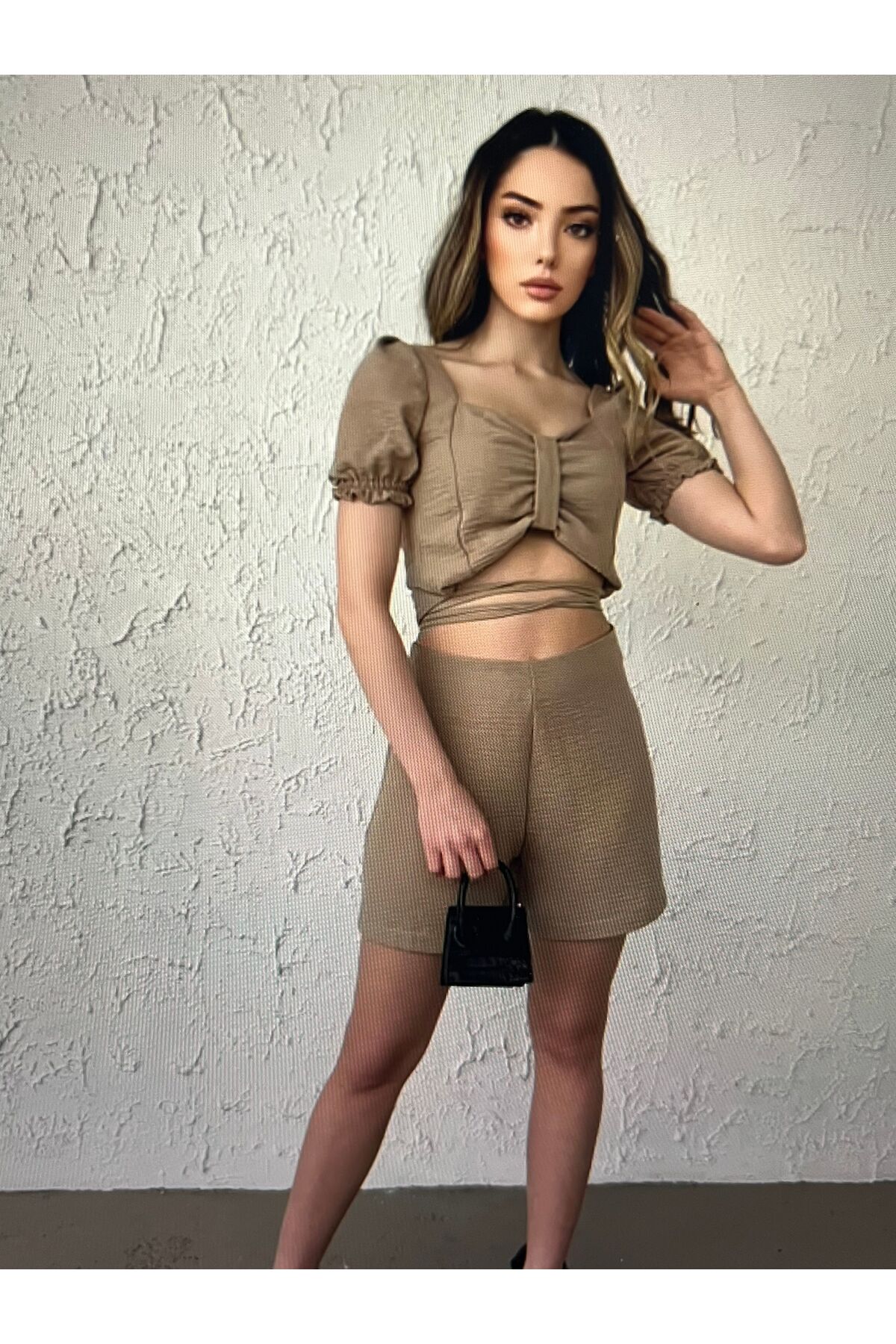 Kadın Naturel Bisiklet Yaka Yırtmaçlı Lastikli Crop Etek Keten Takım Kadın Naturel Bisiklet Yaka Yırtmaçlı Lastikli Crop Etek Keten Takım DT231012 L