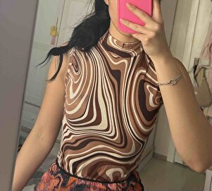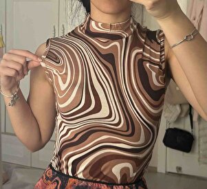 Yarım Kollu Bisiklet Yakalı Kahve Beyaz Ebru Desenli Body Yarım Kollu Bisiklet Yakalı Kahve Beyaz Ebru Desenli Body TYCHQNKHTN168873503942427 XL