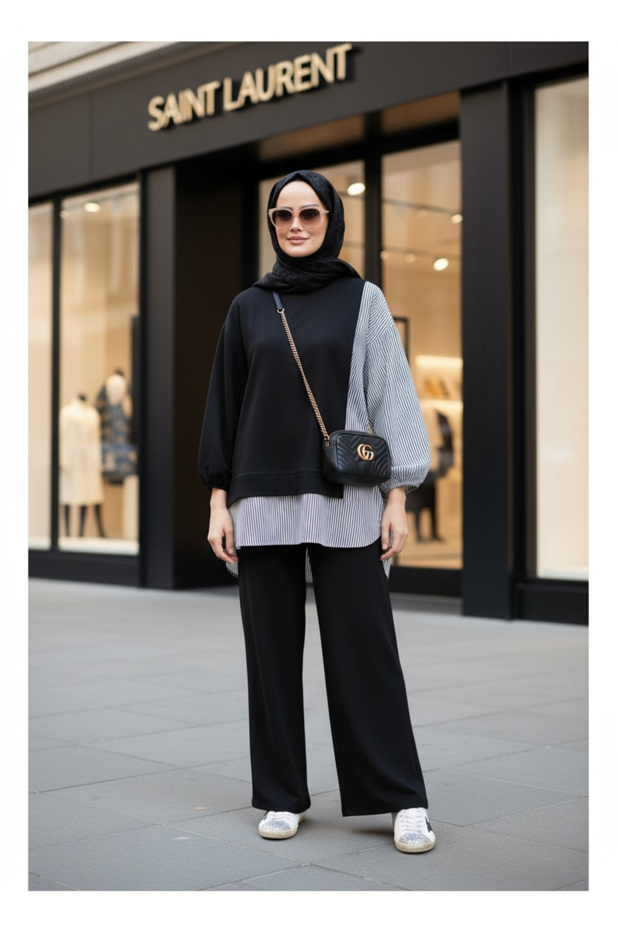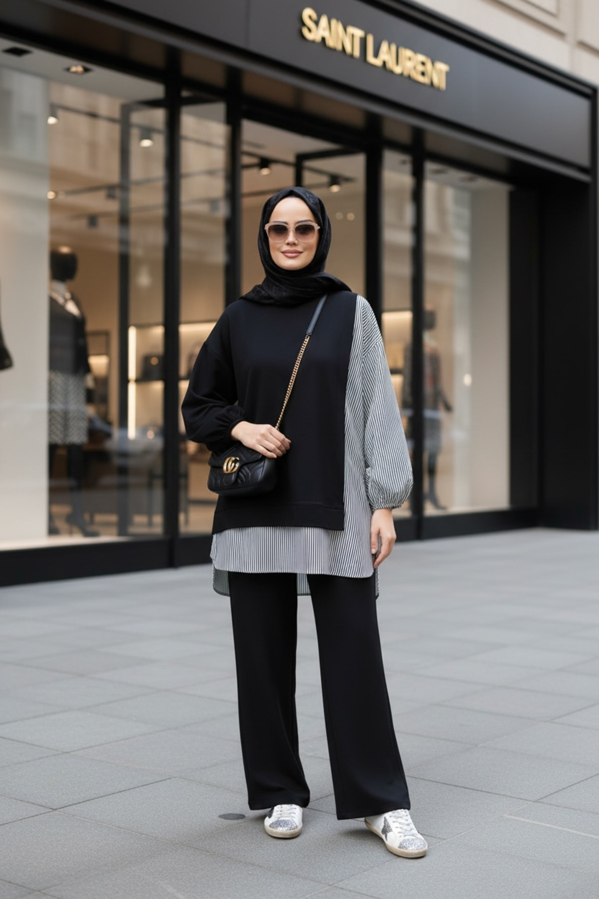 Kadın Tesettür Takım Line İkili Takım Gömlek Siyah Kadın Tesettür Takım Line İkili Takım Gömlek Siyah ASELLİNE01 48-50