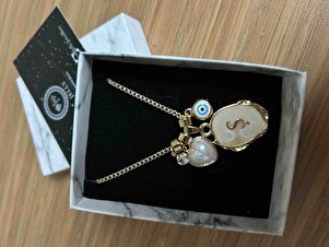 Kadın Gold Renk Altın Kaplama Kişiye Özel Beyaz Mineli Zirkon Taşlı Nazar Boncuklu Harf Kolye -Ş Kadın Gold Renk Altın Kaplama Kişiye Özel Beyaz Mineli Zirkon Taşlı Nazar Boncuklu Harf Kolye -Ş JJ0870 55 cm