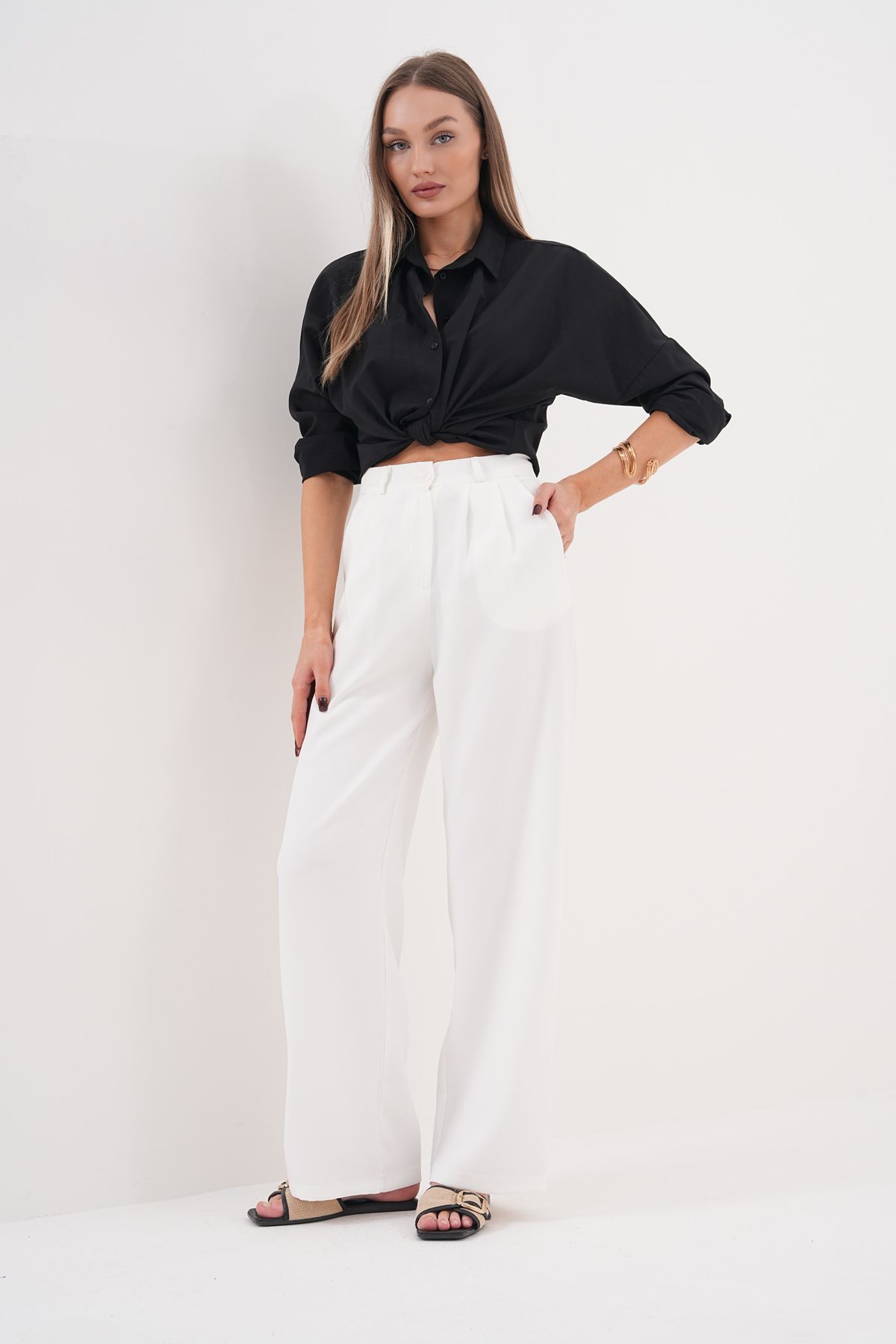 Kadın Pileli Kumaş yüksek bel Palazzo Pantolon Kadın Pileli Kumaş yüksek bel Palazzo Pantolon pnt2023002 3XL