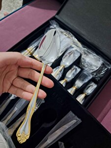 Lalezar Altın Saten 12 Kişilik 89 Parça Kutulu Çatal Kaşık Bıçak Takımı Lalezar Altın Saten 12 Kişilik 89 Parça Kutulu Çatal Kaşık Bıçak Takımı 51321 تک سایز
