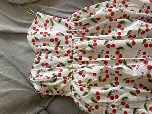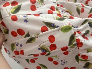 Straplez Mini Elbise Balon Etek Vişne Baskılı Astarlı Pamuklu Straplez Mini Elbise Balon Etek Vişne Baskılı Astarlı Pamuklu 3SAL80155IW 42