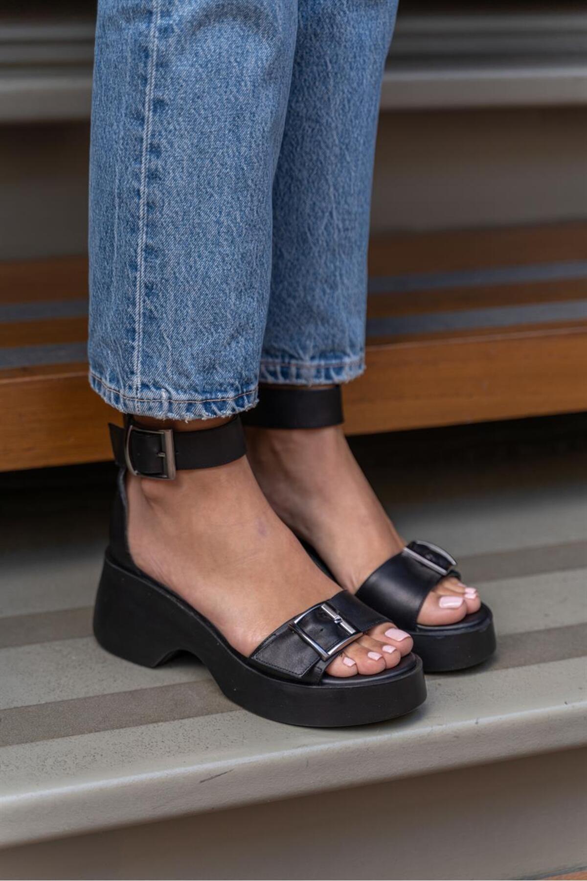 Magali Siyah Deri Sandalet Magali Siyah Deri Sandalet Magali-447 40