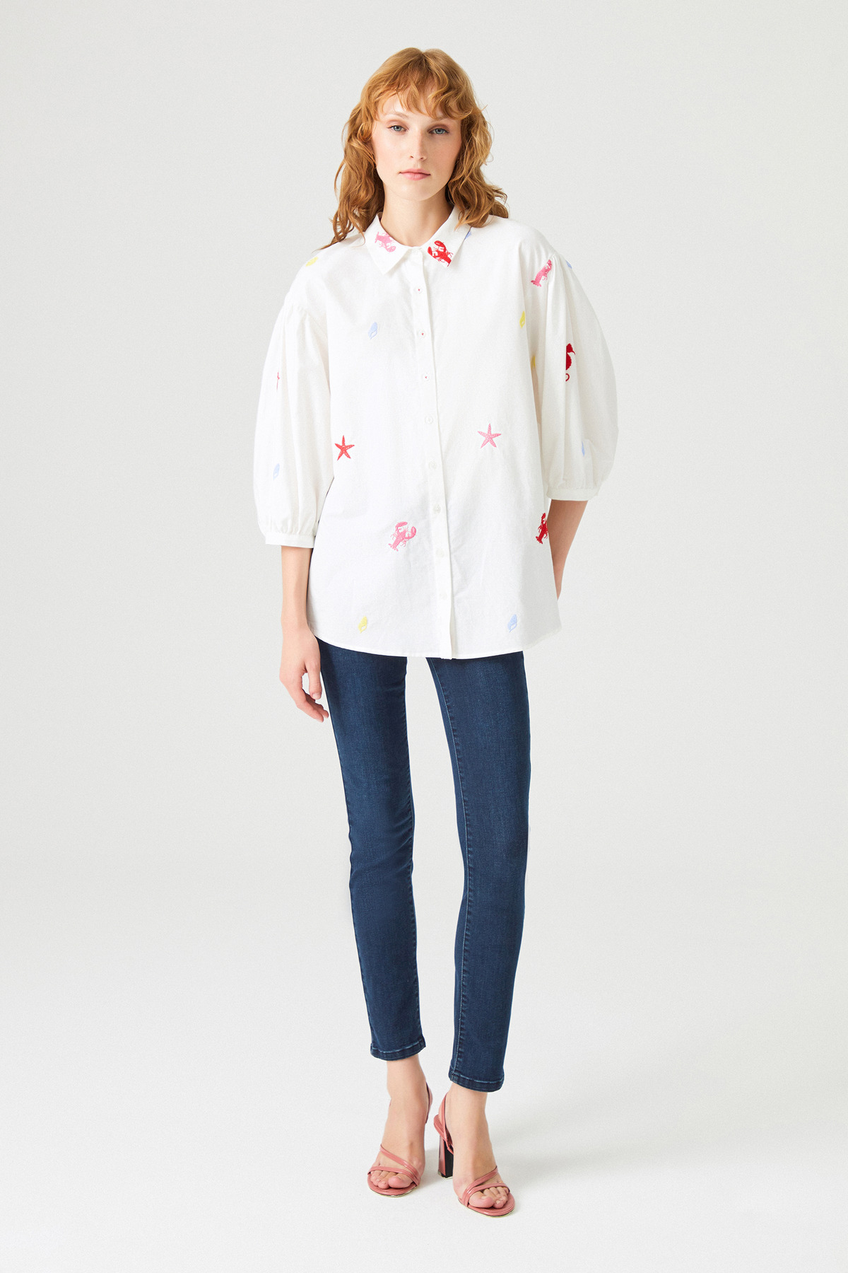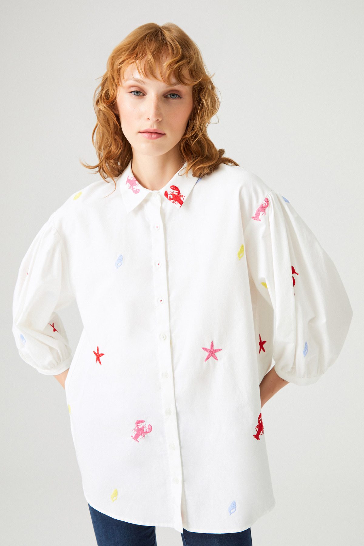 Nakışlı Poplin Gömlek Nakışlı Poplin Gömlek 23Y111182087 46