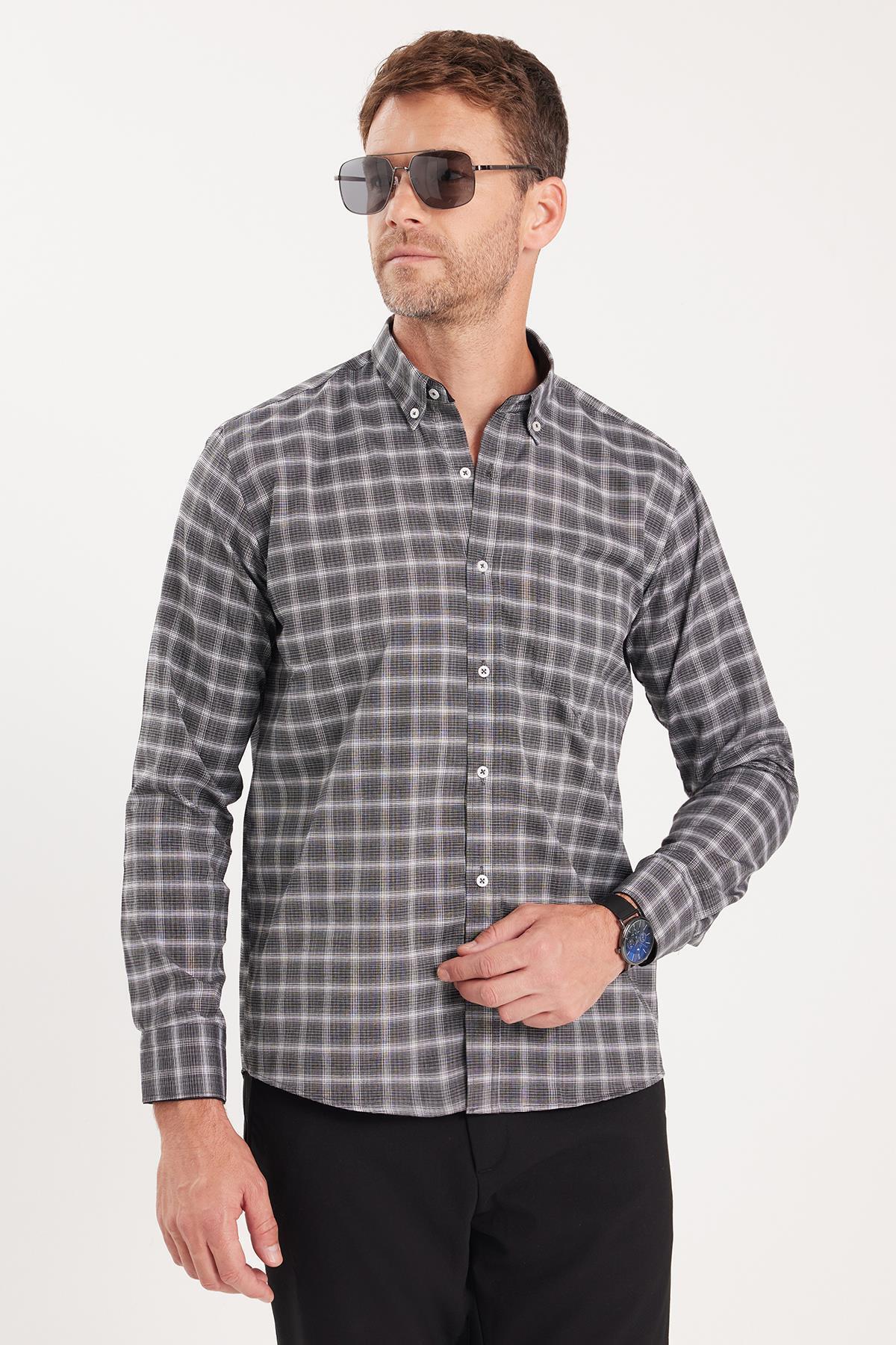 Erkek Regular Fit Klasik Kesim Düğmeli Yaka Küçük Kareli Pamuklu Gömlek Erkek Regular Fit Klasik Kesim Düğmeli Yaka Küçük Kareli Pamuklu Gömlek KL230031-670 2XL