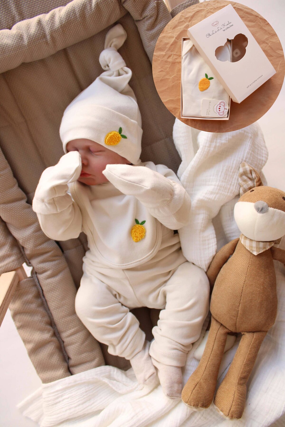 El İşlemesi Mavi Kuşlu Sütlü Kahve Kumaş Detaylı Erkek Yenidoğan Tulum ve Şapkası El İşlemesi Mavi Kuşlu Sütlü Kahve Kumaş Detaylı Erkek Yenidoğan Tulum ve Şapkası MMBESKT270103 3-6 AY