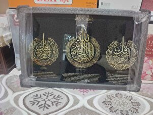 Ayetel Kürsi, Felak ve Nas Suresi Dini İslami Cam Tablo, Ev Ofis Duvar Dekoru Hediyelik Büyük Tablo Ayetel Kürsi, Felak ve Nas Suresi Dini İslami Cam Tablo, Ev Ofis Duvar Dekoru Hediyelik Büyük Tablo GLASSD10796 130 x 80