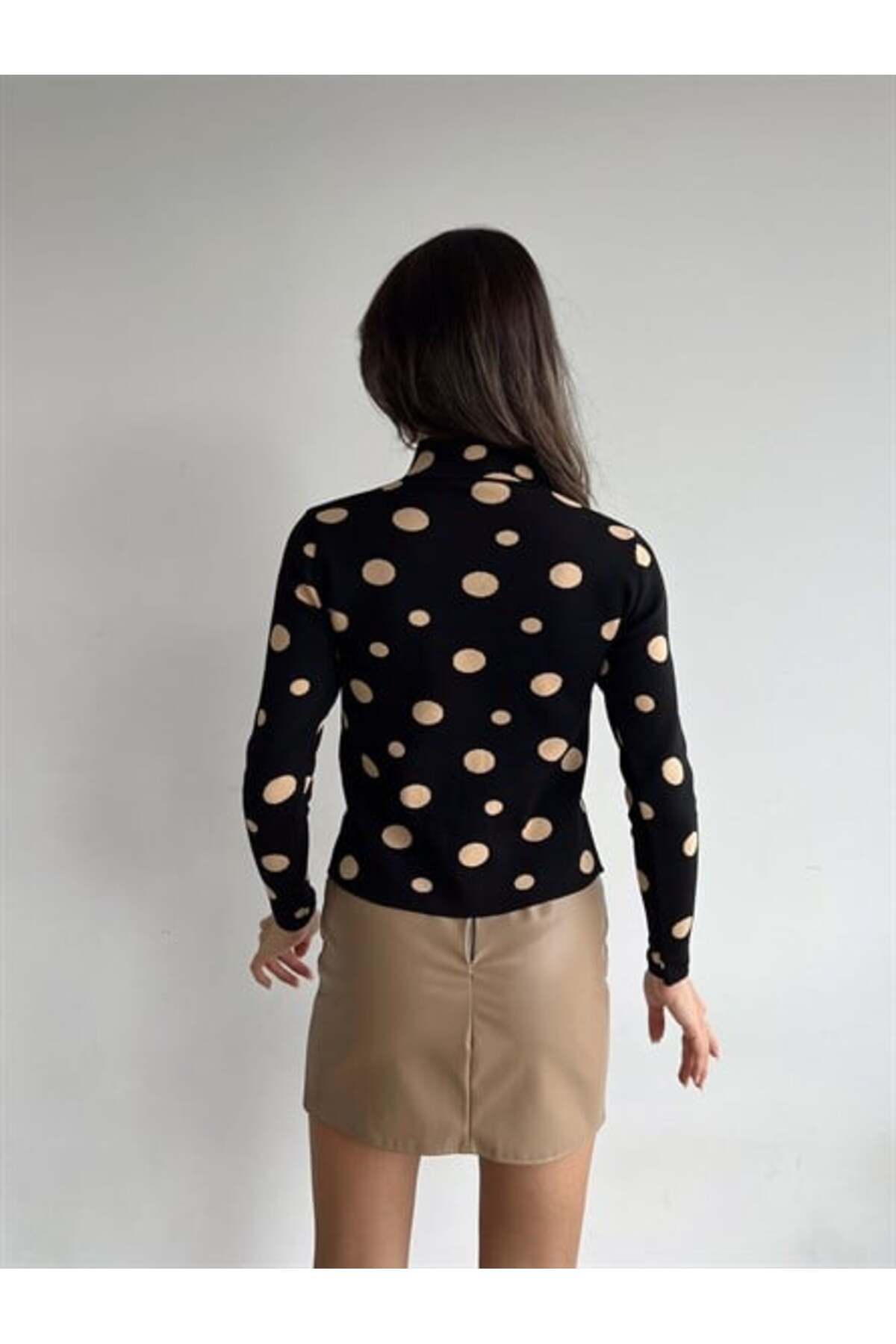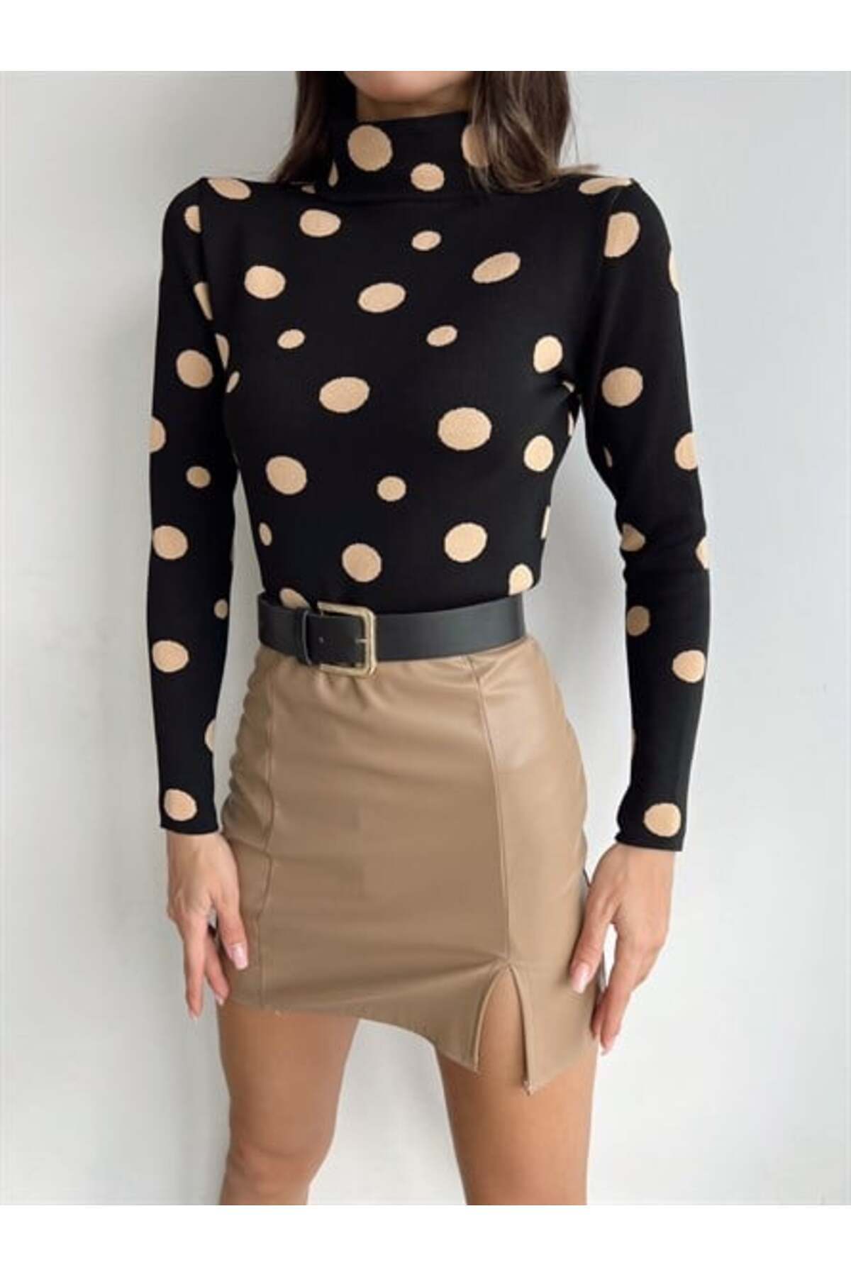 Desenli Dik Yaka Triko Bluz Taba Puantiye Desenli Dik Yaka Triko Bluz Taba Puantiye MYD9200.TR.01 Standart