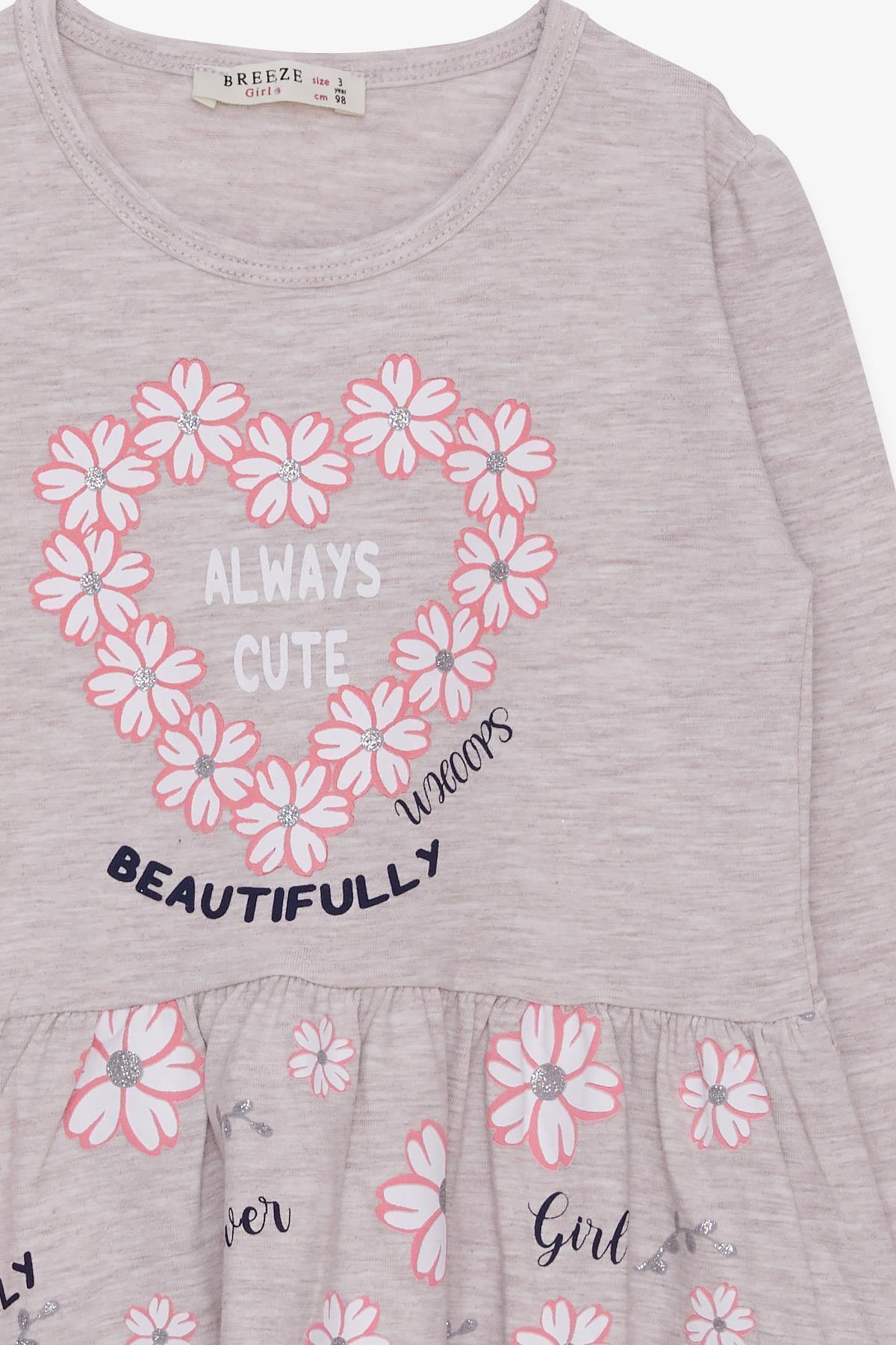 Kız Çocuk Uzun Kollu Elbise Çiçekli Baskılı Desenli 3-7 Yaş, Bej Melanj Kız Çocuk Uzun Kollu Elbise Çiçekli Baskılı Desenli 3-7 Yaş, Bej Melanj 17891-33 7 Yaş
