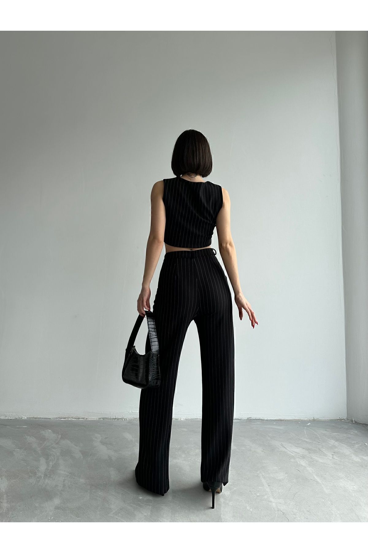 Kadın Palazzo Pantolon Düğmeli Kısa Crop Yelek İkili Çizgili Takım Kadın Palazzo Pantolon Düğmeli Kısa Crop Yelek İkili Çizgili Takım yeleklitakım XL