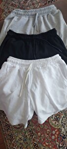 Kadın Siyah-Beyaz-Gri Baskısız 3'lü Paket Penye Şort Kadın Siyah-Beyaz-Gri Baskısız 3'lü Paket Penye Şort üçlükadındüz XL