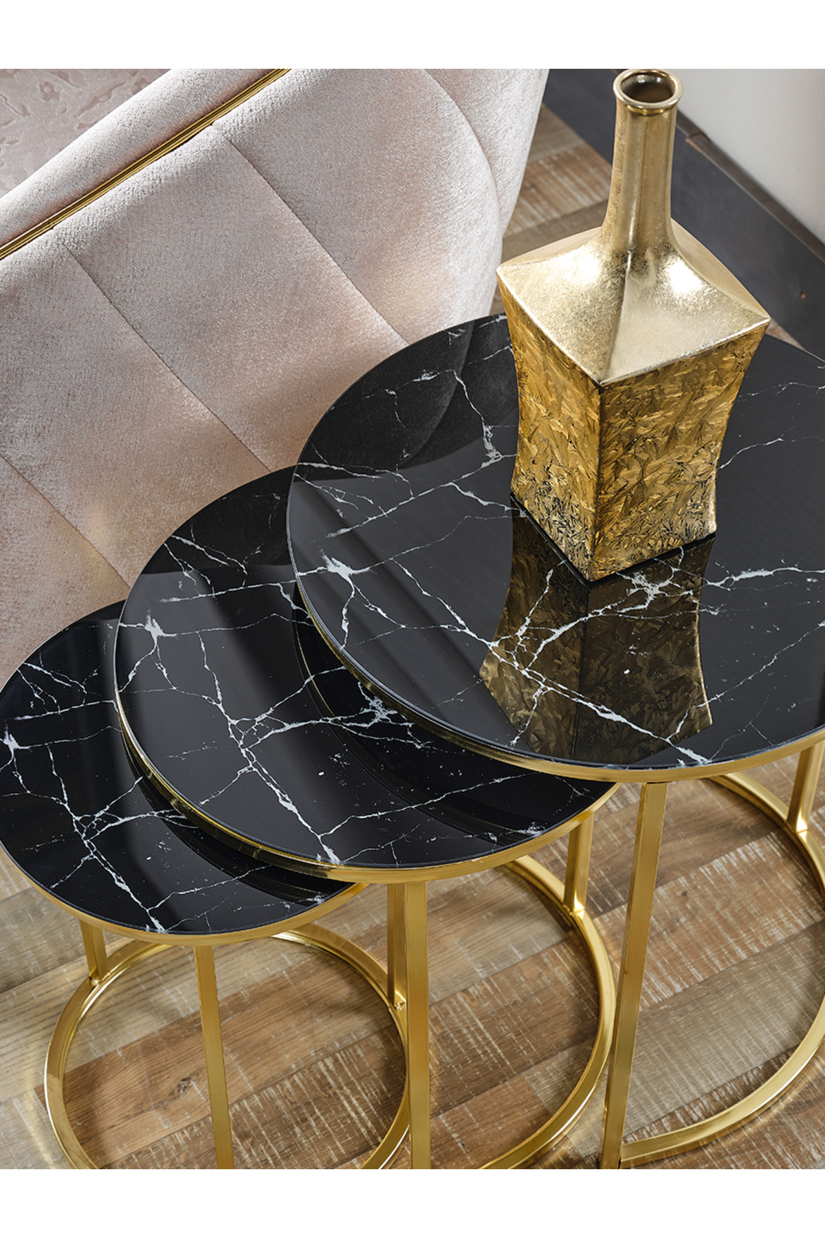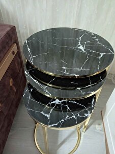4 Lü Siyah Mermertemperli Kırılmaz Cam Gold Metal Ayaklı C Model Sehpa Takımı (ZİGON VE ORTA) 4 Lü Siyah Mermertemperli Kırılmaz Cam Gold Metal Ayaklı C Model Sehpa Takımı (ZİGON VE ORTA) CTKM-001 تک سایز