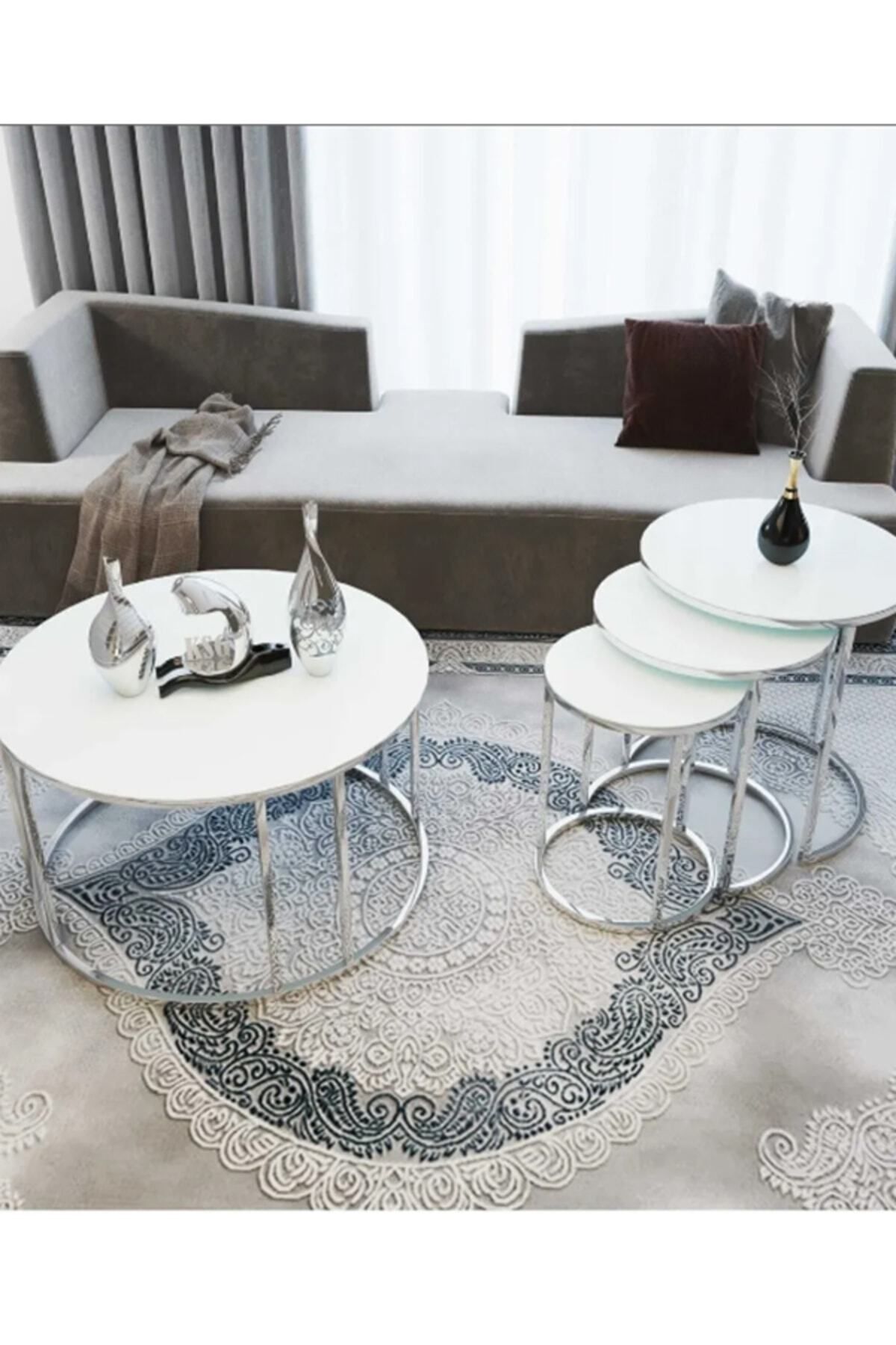 4 Lü Beyaz Mermer Temperli Kırılmaz Cam Gümüş Metal Ayaklı Cam C Model Sehpa Takımı (ZİGON VE ORTA) 4 Lü Beyaz Mermer Temperli Kırılmaz Cam Gümüş Metal Ayaklı Cam C Model Sehpa Takımı (ZİGON VE ORTA) CTKM-001 تک سایز