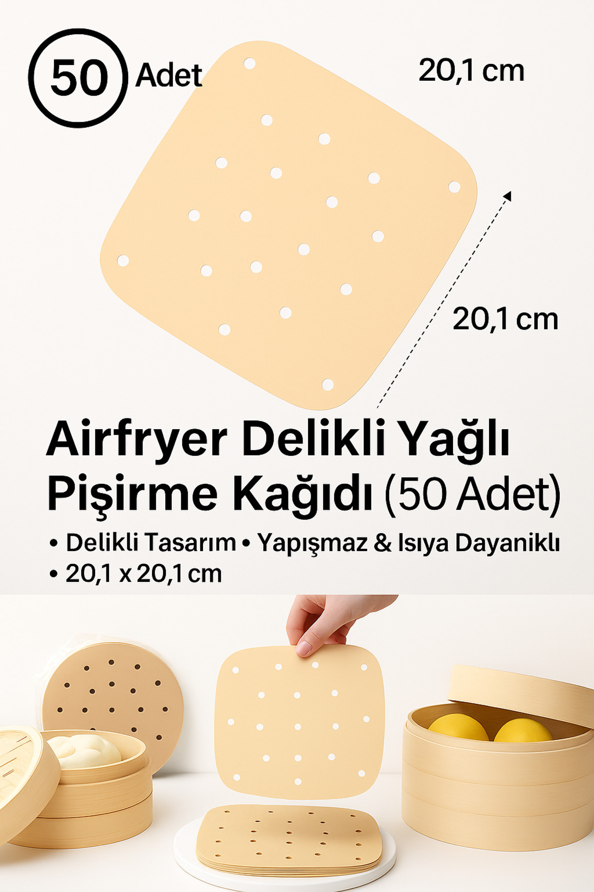 Zahmetsiz ve Hijyenik Pişirme İçin Pratik Çözüm – 50 Adet Yapışmaz Air Fryer Kağıdı Zahmetsiz ve Hijyenik Pişirme İçin Pratik Çözüm – 50 Adet Yapışmaz Air Fryer Kağıdı 36373 تک سایز