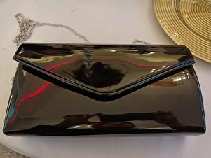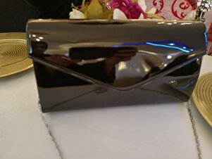 Kadın siyah rugan biyeli abiye çanta Kadın siyah rugan biyeli abiye çanta 458 تک سایز