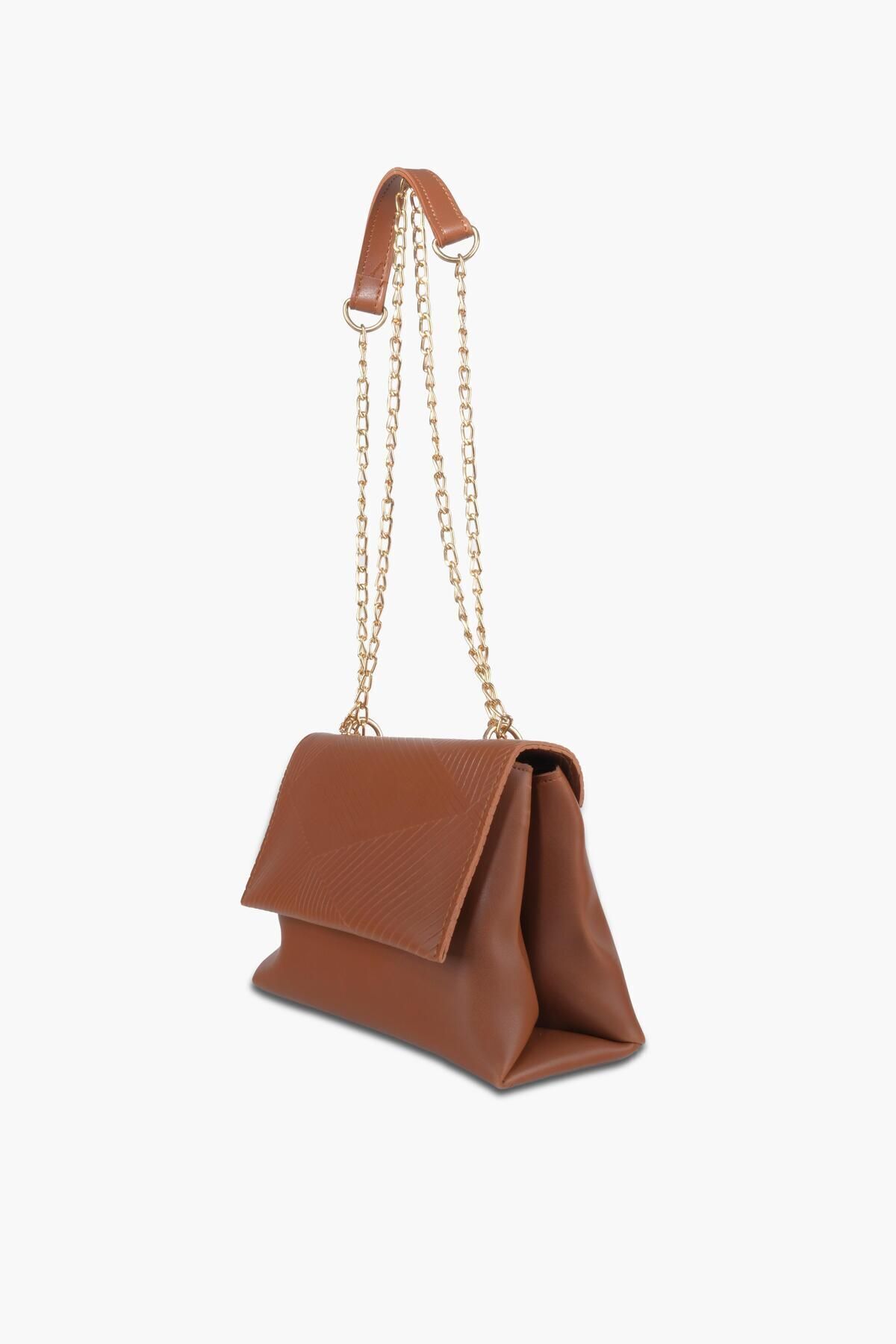 Taba Asimetrik Desenli Gold Asklı Çapraz Askılı Ve Omuz Çantası Silvia Taba Asimetrik Desenli Gold Asklı Çapraz Askılı Ve Omuz Çantası Silvia تک سایز