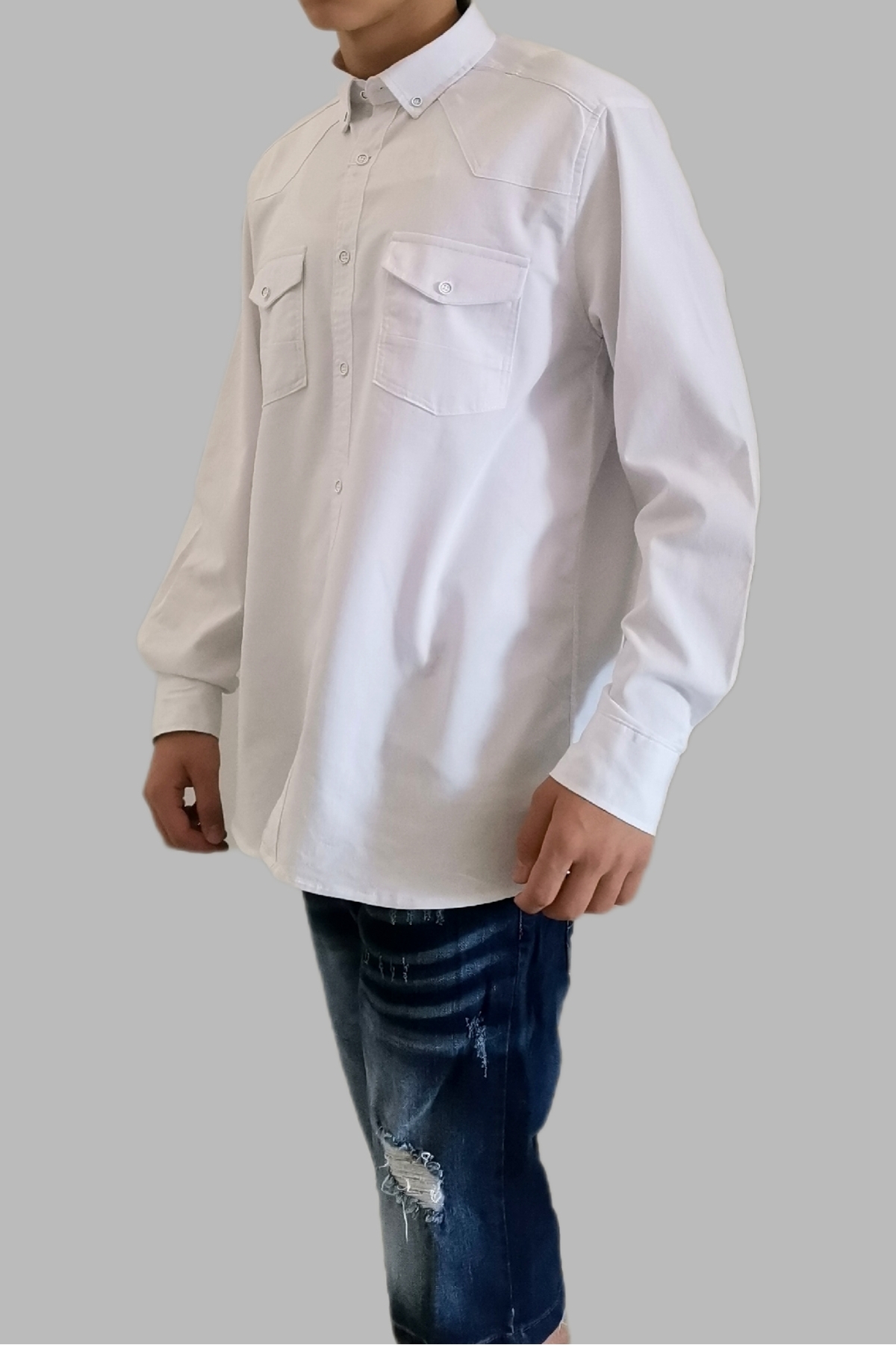 Erkek Beyaz Çift Cepli Düz Likralı Uzun Kollu Kot Gömlek Erkek Beyaz Çift Cepli Düz Likralı Uzun Kollu Kot Gömlek JEAN SHIRT XL