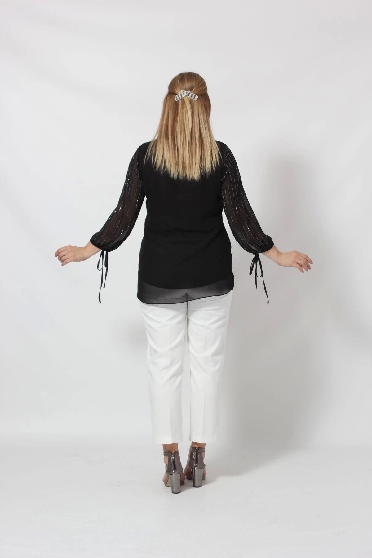 3243 Kolu Taş Baskılı Şık Bluz Siyah 3243 Kolu Taş Baskılı Şık Bluz Siyah 52