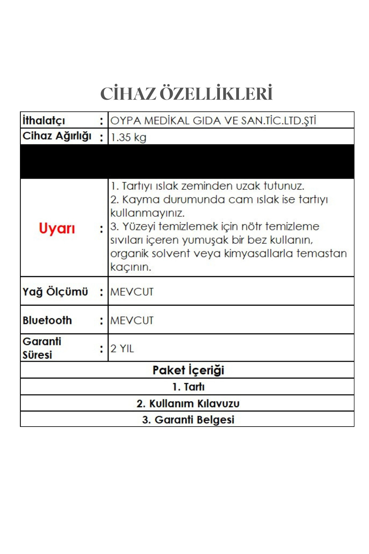 - Maksimum Ağırlık : 180 kg