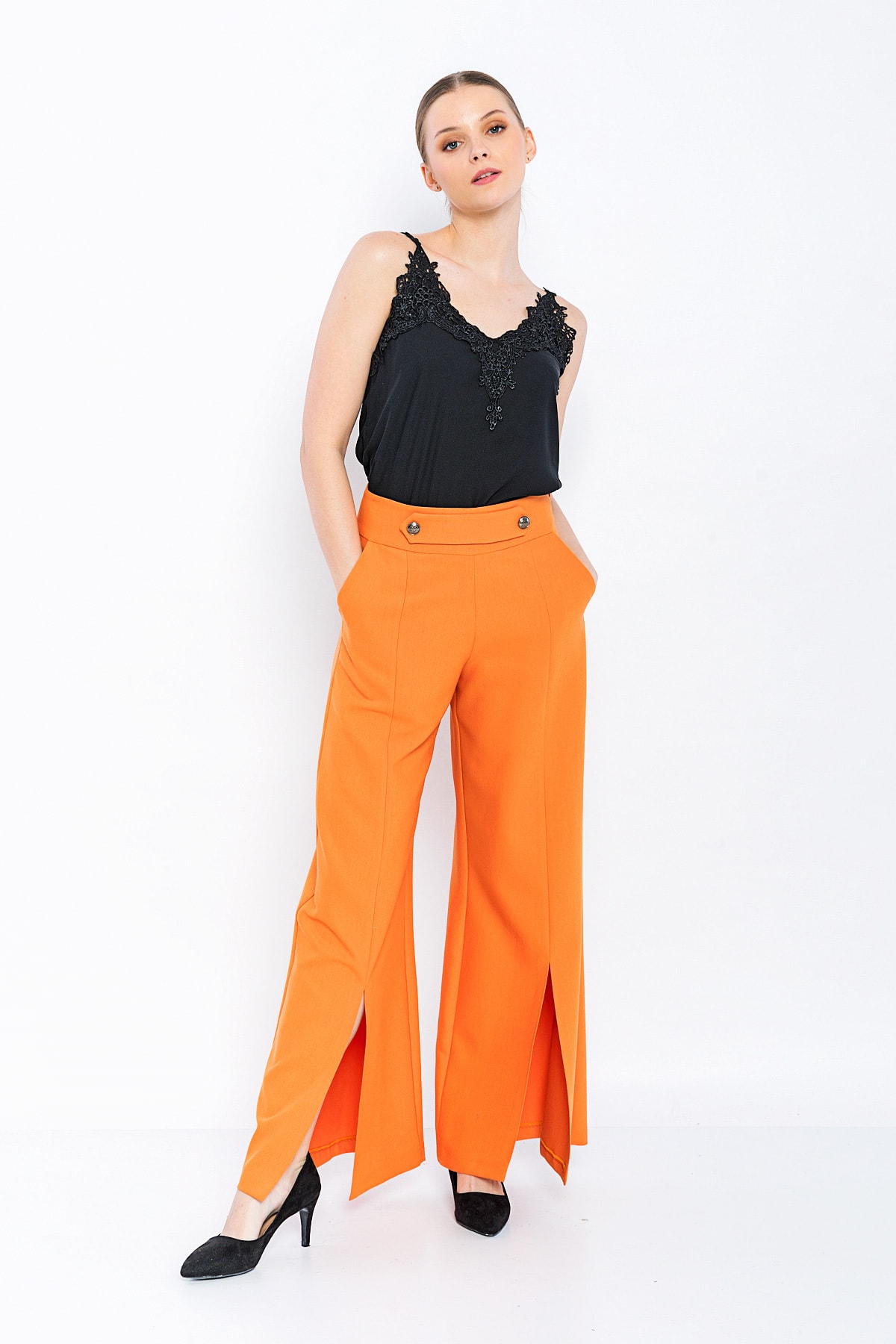 Kadın Yüksek Bel Yırtmaçlı Dar Paça Gabardin Pantolon-Turuncu Kadın Yüksek Bel Yırtmaçlı Dar Paça Gabardin Pantolon-Turuncu IKPNTL015 M