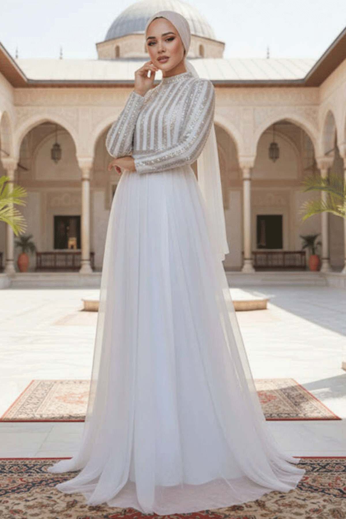Drape Detaylı Pudra Tesettür Abiye Elbise 5711PD Drape Detaylı Pudra Tesettür Abiye Elbise 5711PD ARM-5711 52