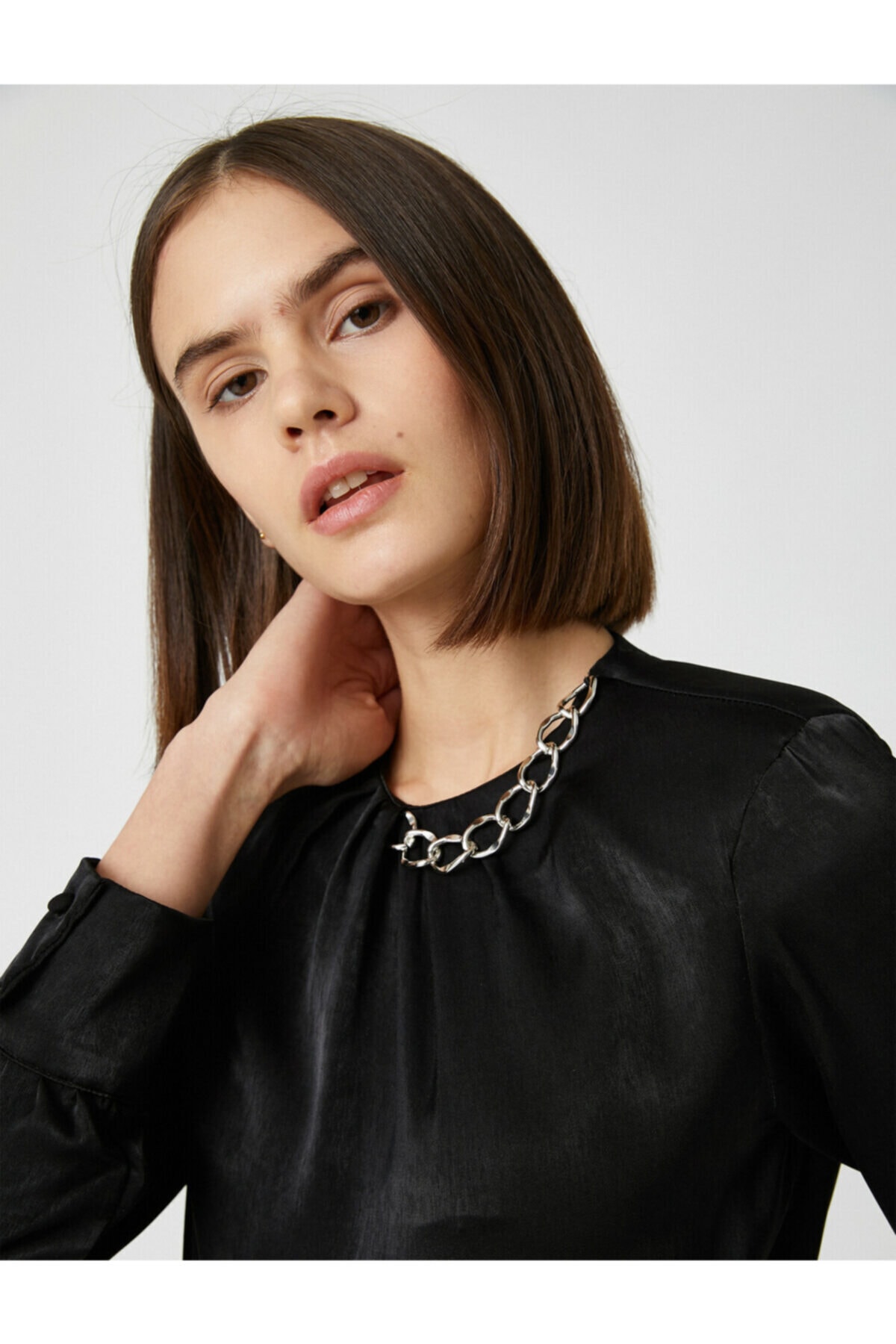 Dik Yaka Bluz Drape Detaylı Uzun Kollu Dik Yaka Bluz Drape Detaylı Uzun Kollu 4WAK60002UW 44